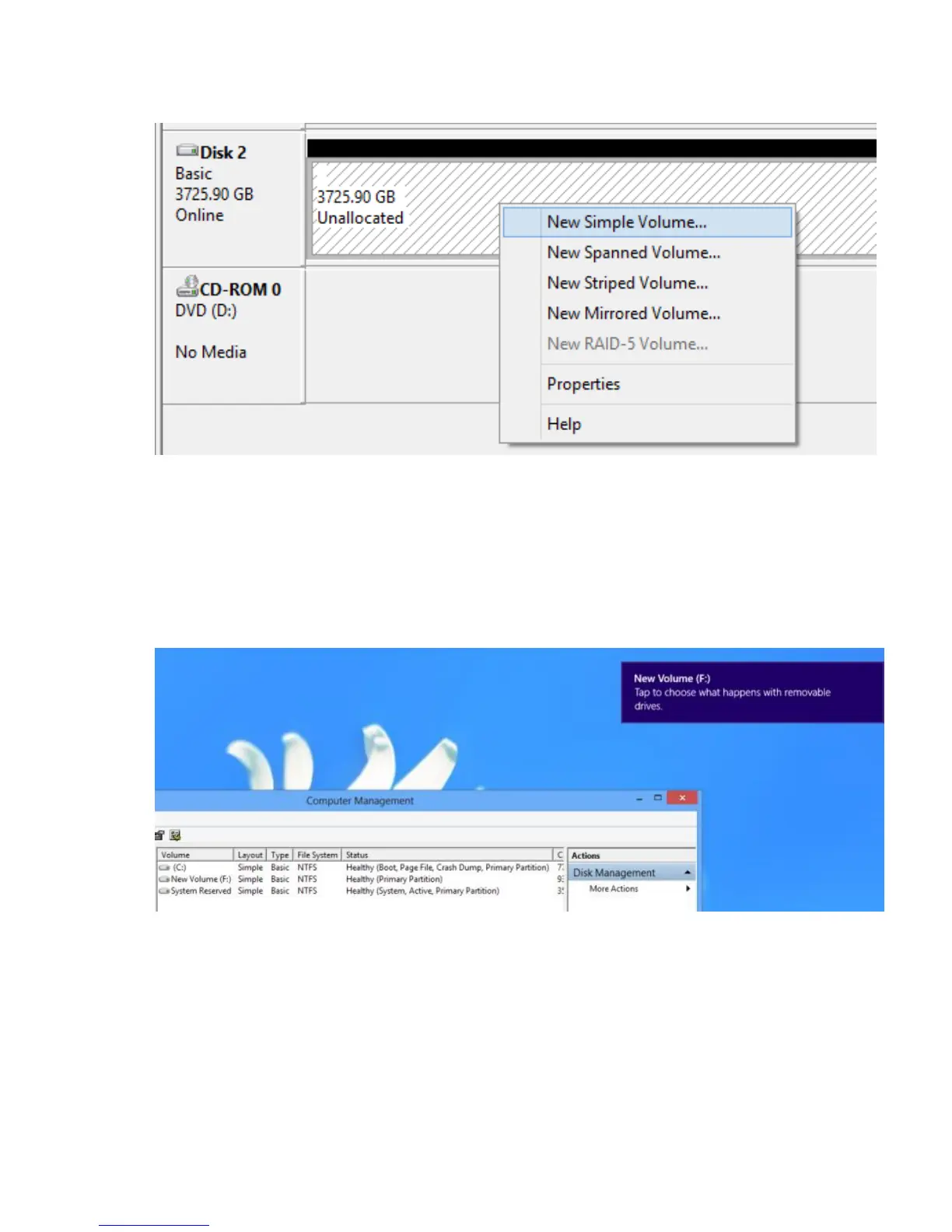 2) Create and format new partition on the new disk.