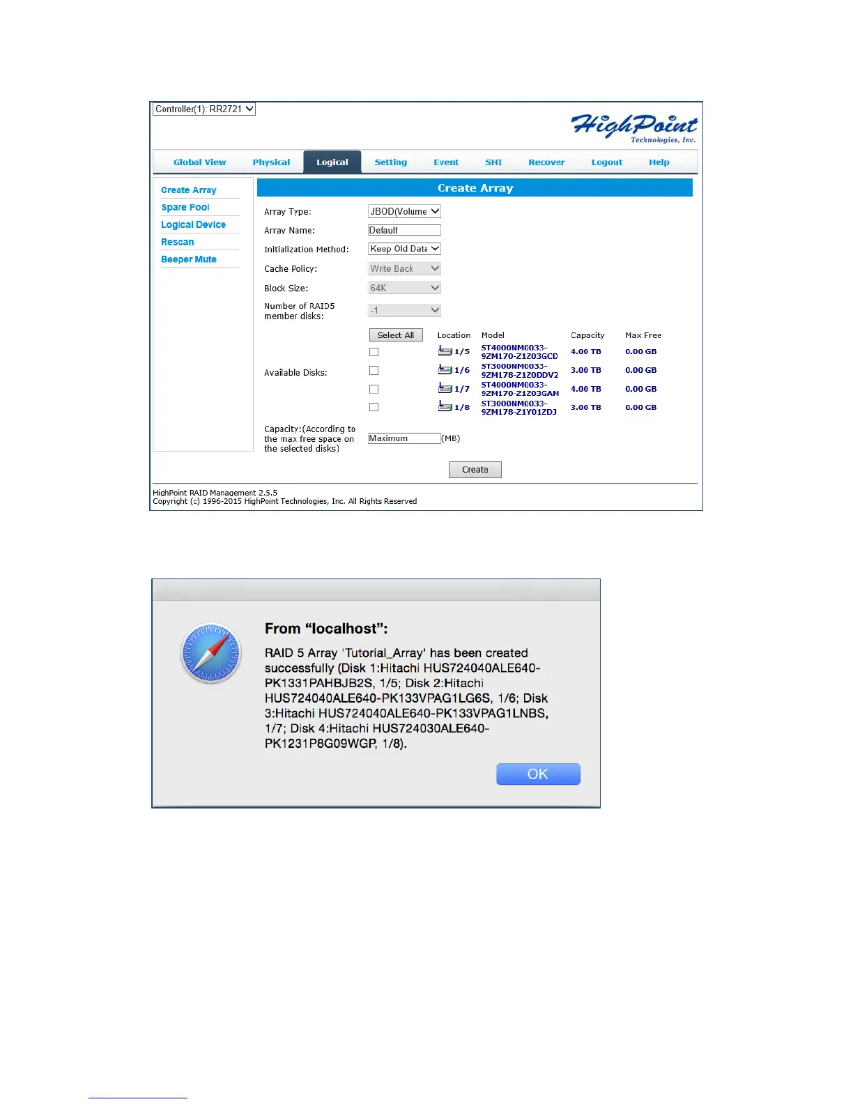 Array disk is created