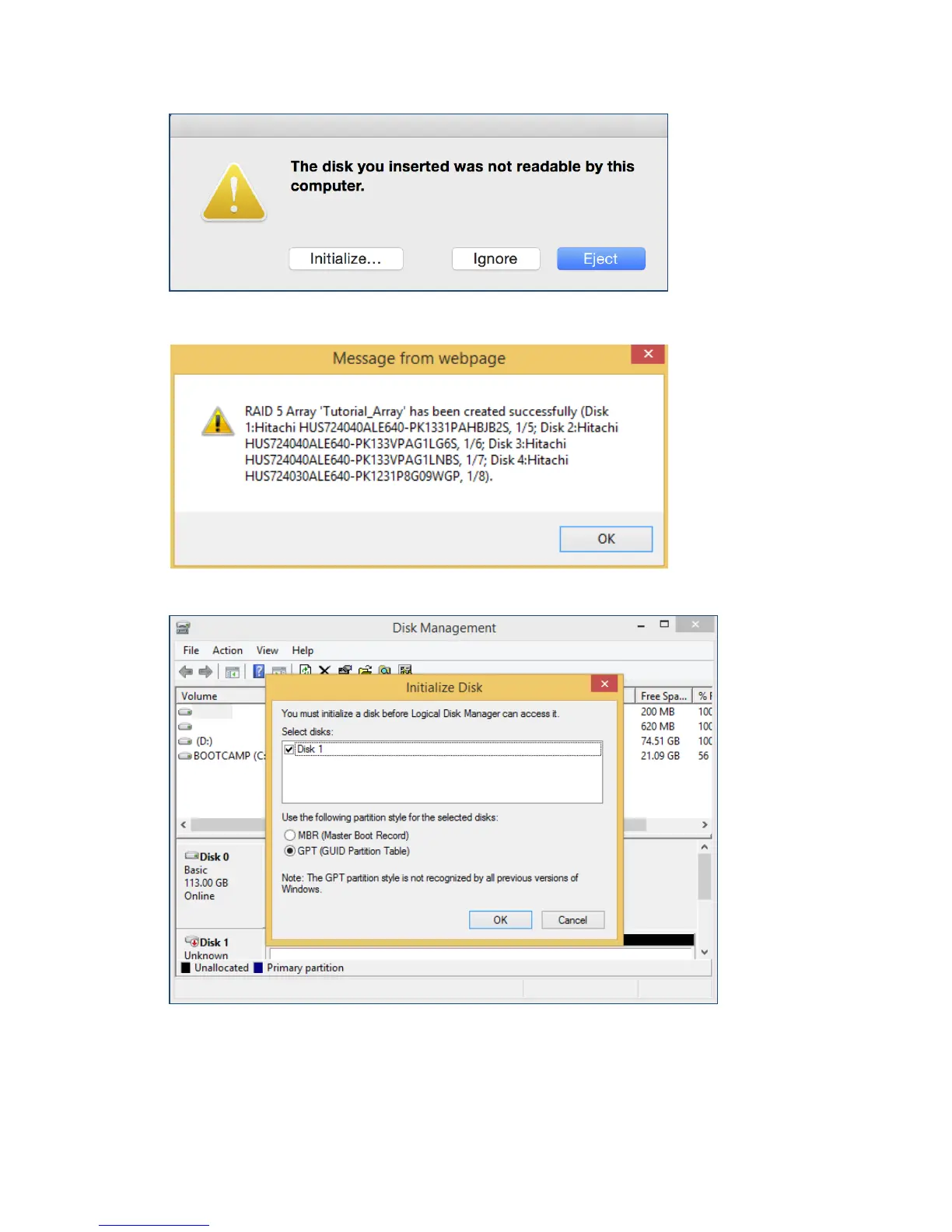 (Windows) For Windows platforms, user will be prompted to initialize disks in Disk