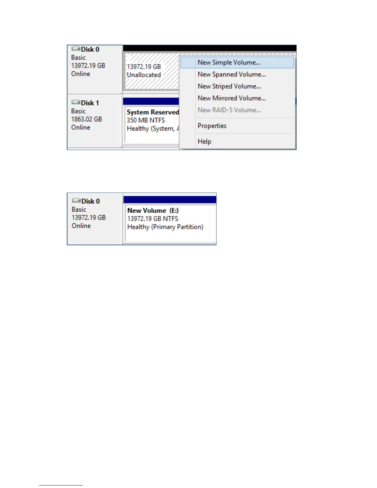 7. Once finished, the new volume will receive a drive letter and be available for use.