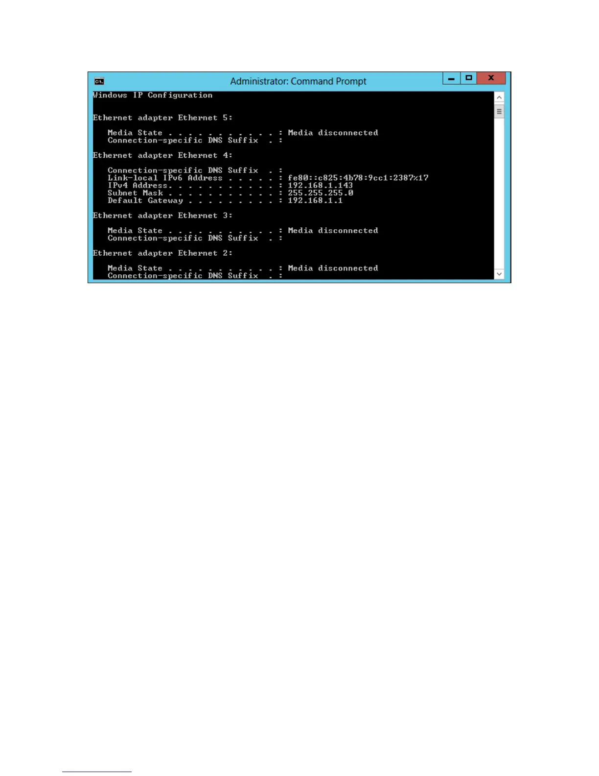Example: The IPv4 address is under Ethernet adapter Ethernet 4 and is 192.168.1.143