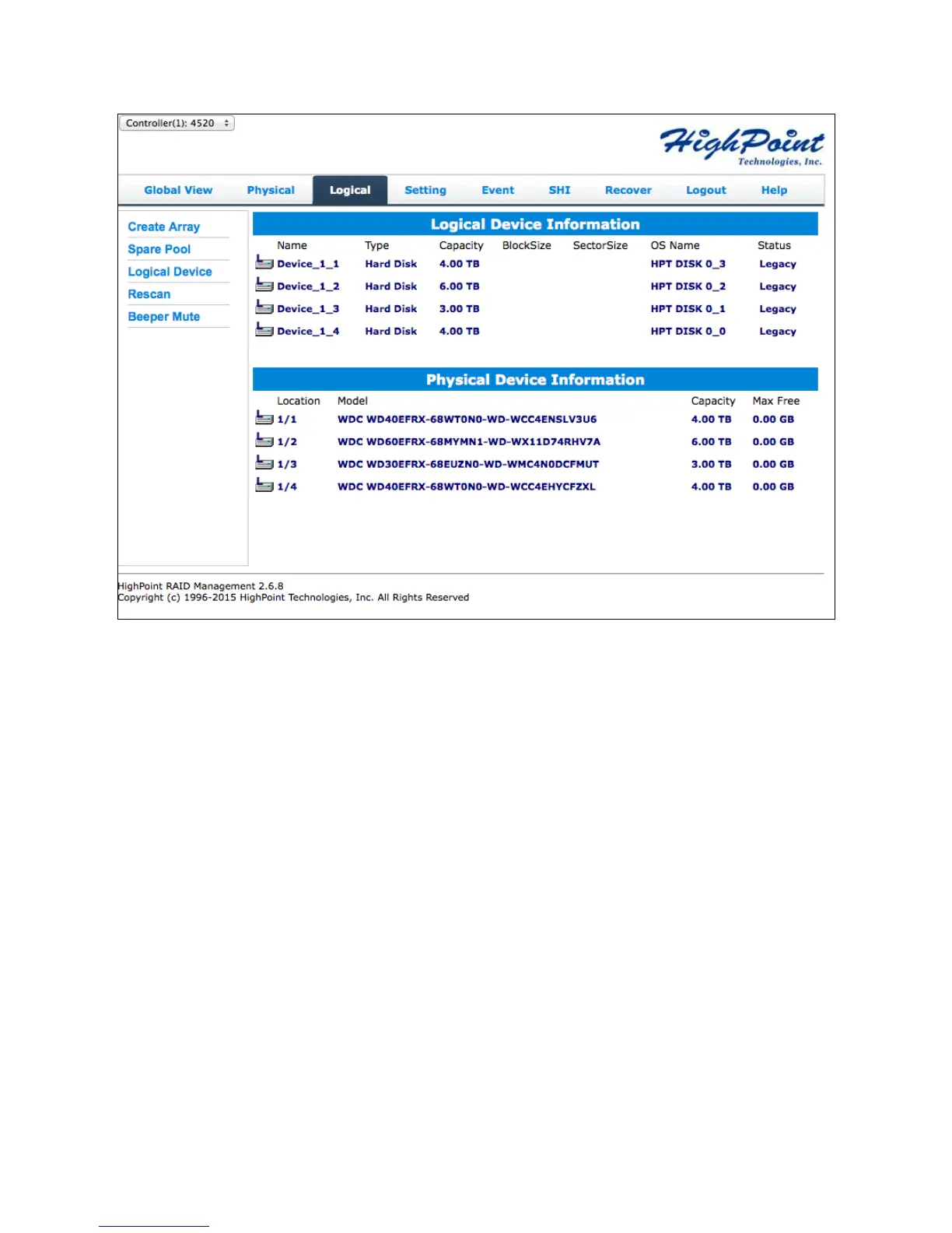 Operating System (OS). The RocketStor 6414TS has a RocketRAID 2711 controller