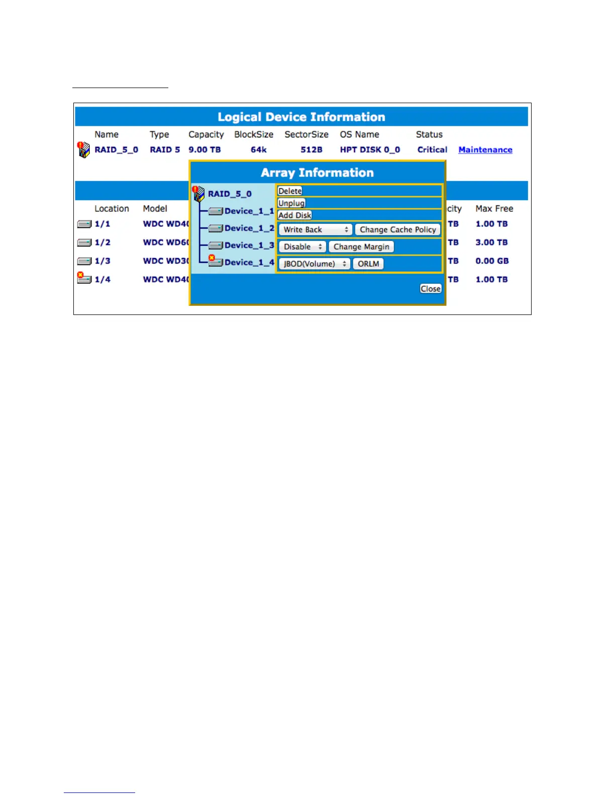Maintenance options for Critical Arrays.