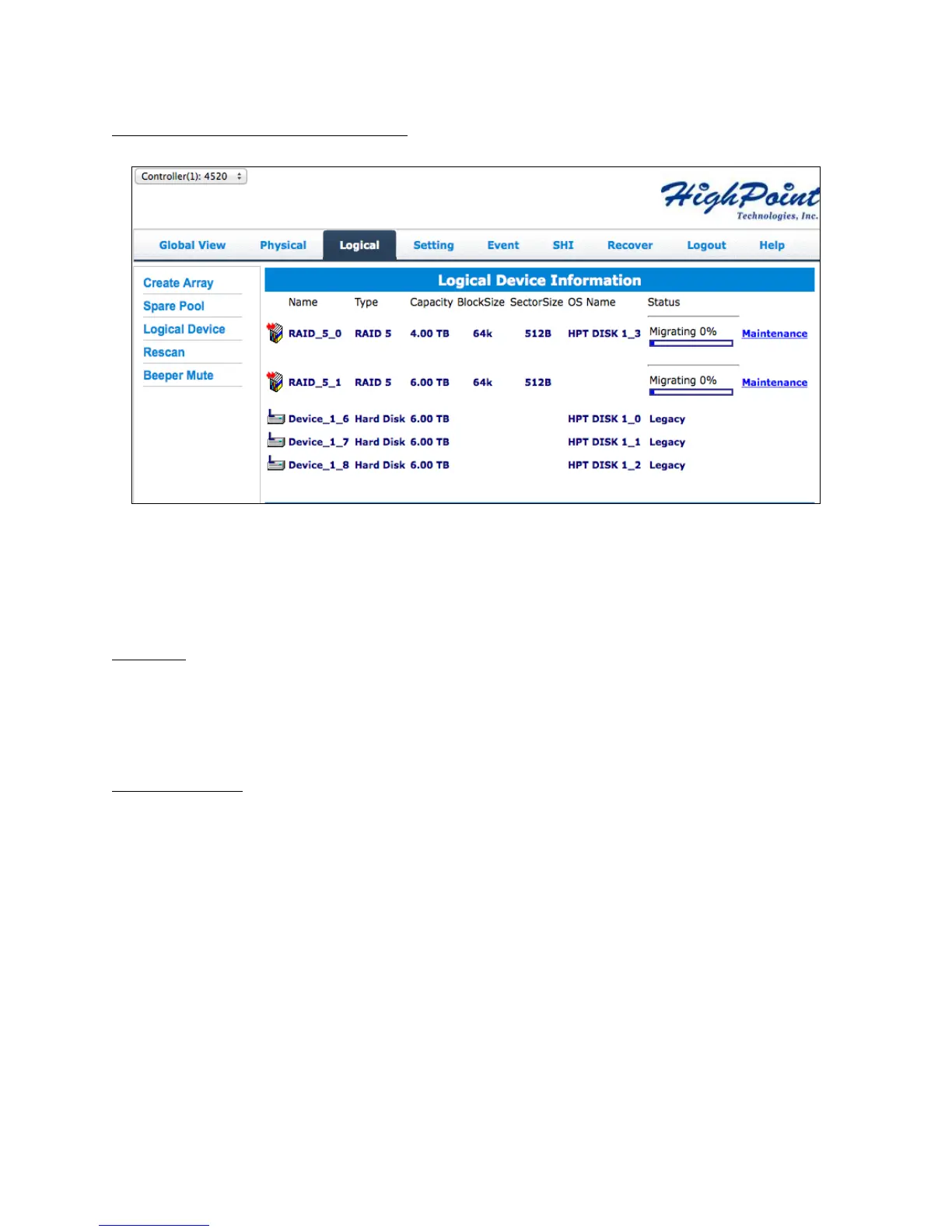 Clicking rescan will force drivers to report array status. For any disk(s) you hot plug