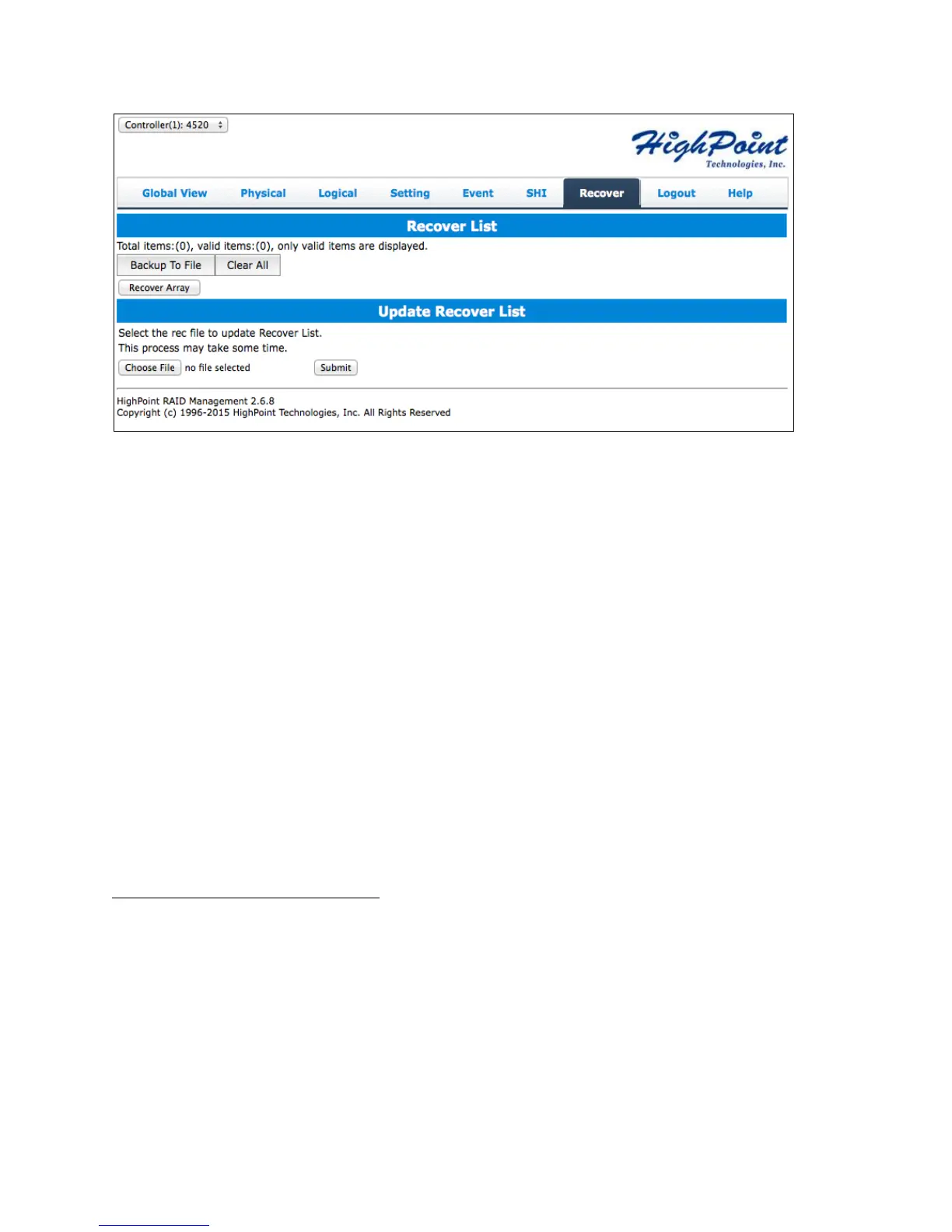 The Recover List will list all your previous and current created arrays. Each entry will