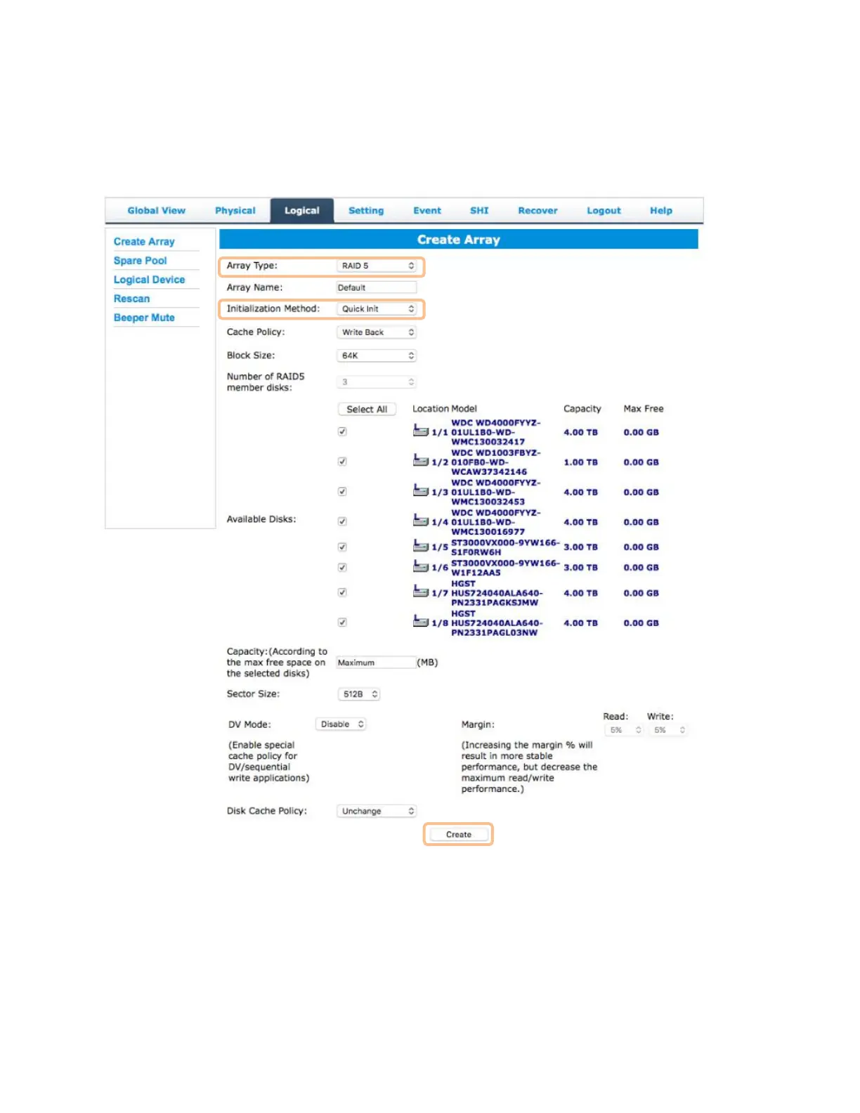 Specify the RAID Level (RAID 5 or 6) using the Array Type drop-down menu. Next,