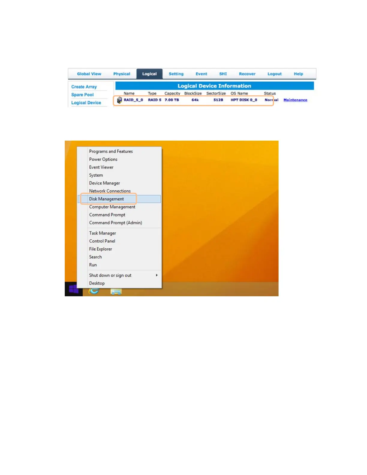 5. Right Click the start button or bottom-left window. Select the Disk Management