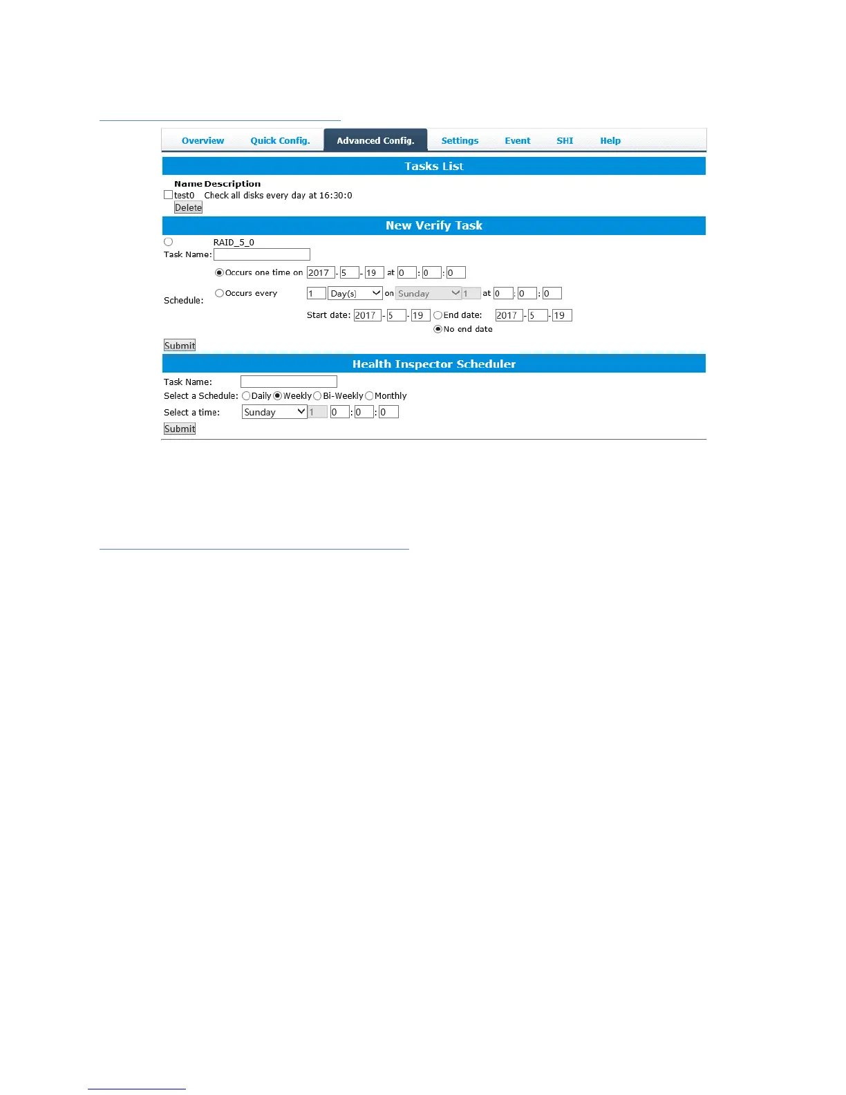 The Scheduler enables you to schedule disk/array checkups to ensure disks/array are