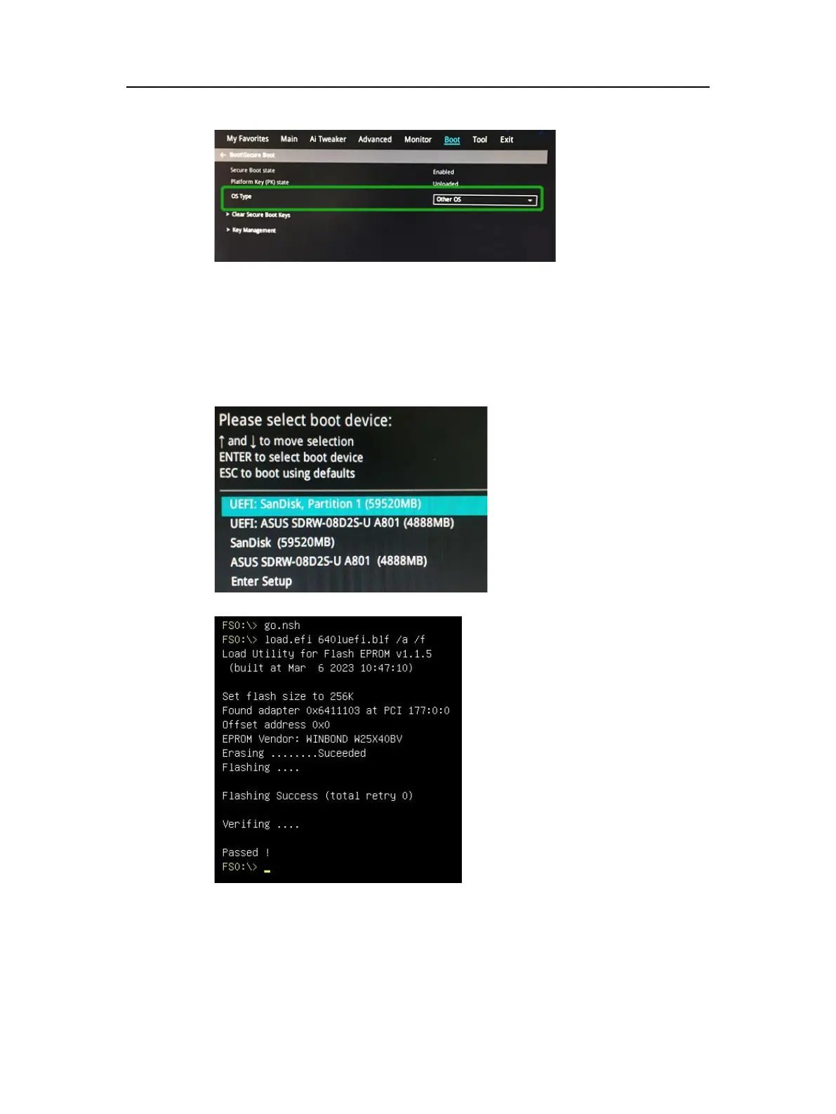 b. Booting from the UEFI USB flash and enter the UEFI environment;