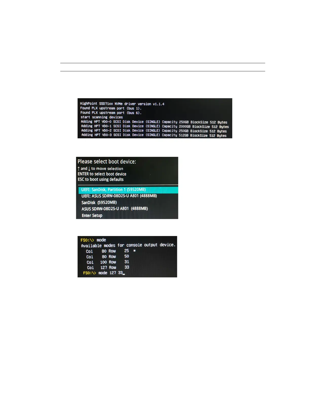 b. Insert the bootable USB flash drive into the motherboard and boot the system.