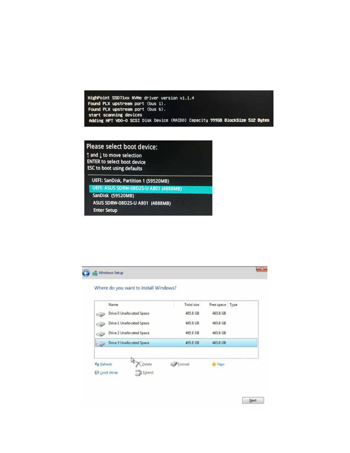 d. Install Windows, to “Where do you want to install Windows?”, you should see