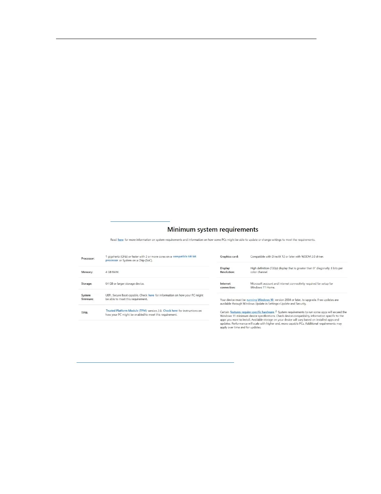 11. The following are the basic requirements for installing Windows 11 on your