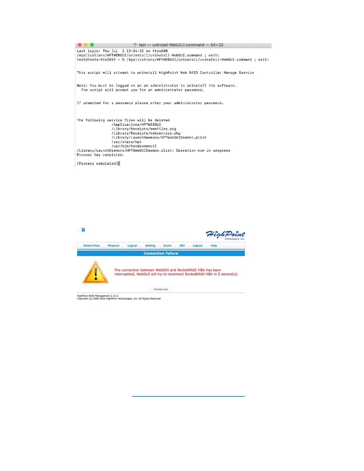 "Connection Failure" warning when attempting to start the interface: