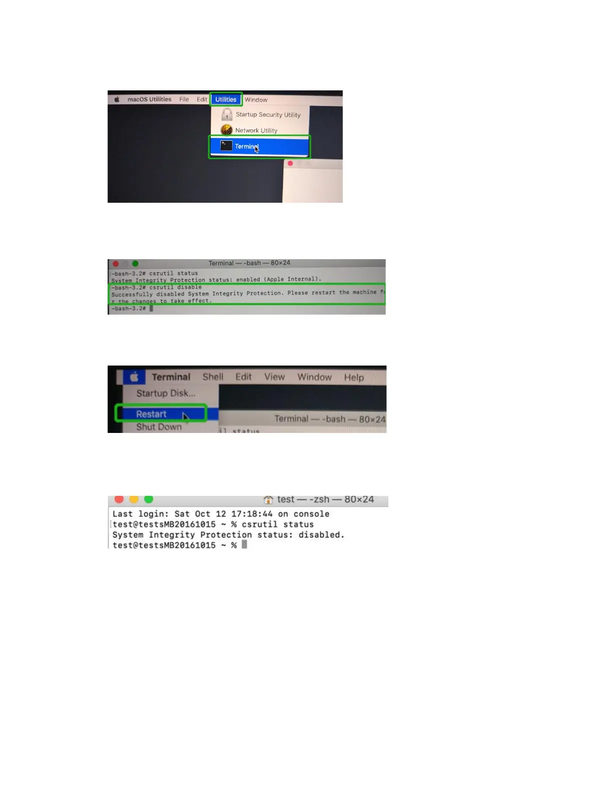 3) Set SIP to disabled in using Terminal. Enter the following command: