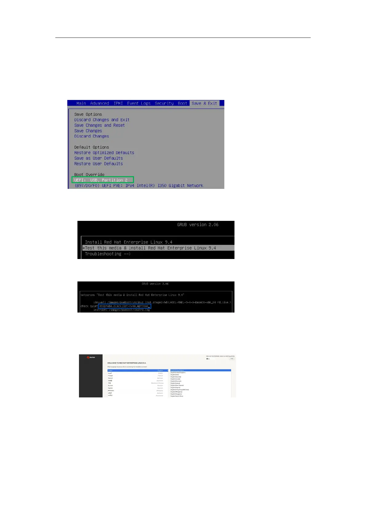 a. When the Installation screen appears, press the e key to edit the boot command line option.