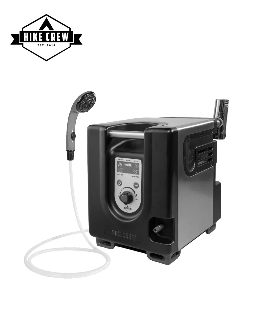 If the HIKE CREW Water Heater device does not power on, ensure the DC fuse in the cigarette lighter fitting is not blown. Also, verify that adequate DC power is available and check if the battery requires recharging.