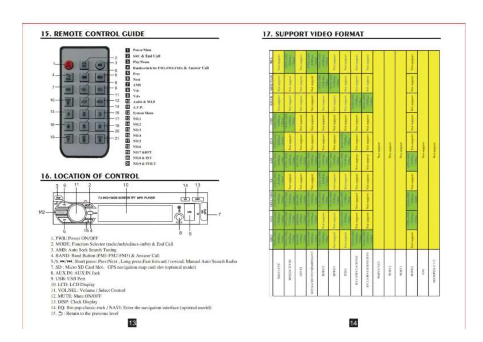 Hikity 9601 - REMOTE CONTROL GUIDE; UNIT CONTROLS AND PORTS; SUPPORTED VIDEO FORMATS