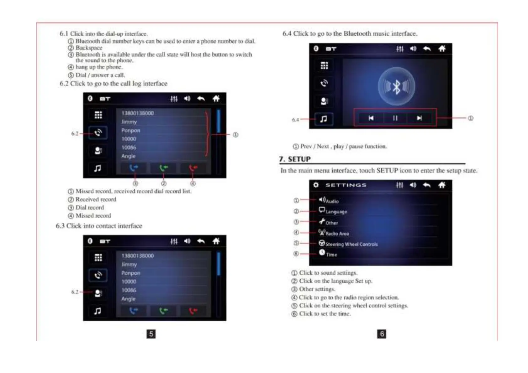 Hikity 9601 - BLUETOOTH OPERATIONS; Dial-up and Call Logs; Contact Management; Bluetooth Music Playback