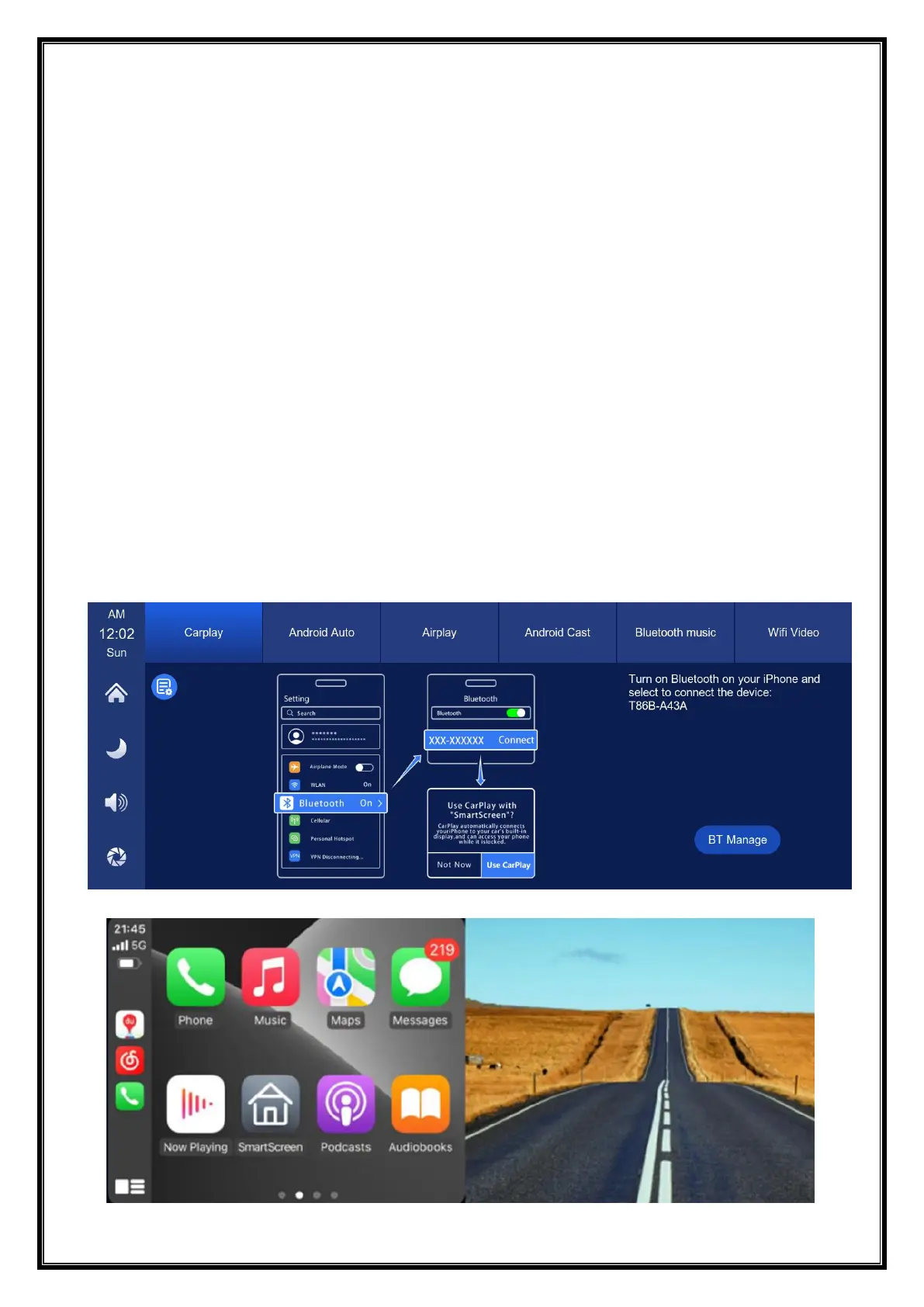 Bluetooth is successfully connected, you can connect to Apple CarPlay. (When the