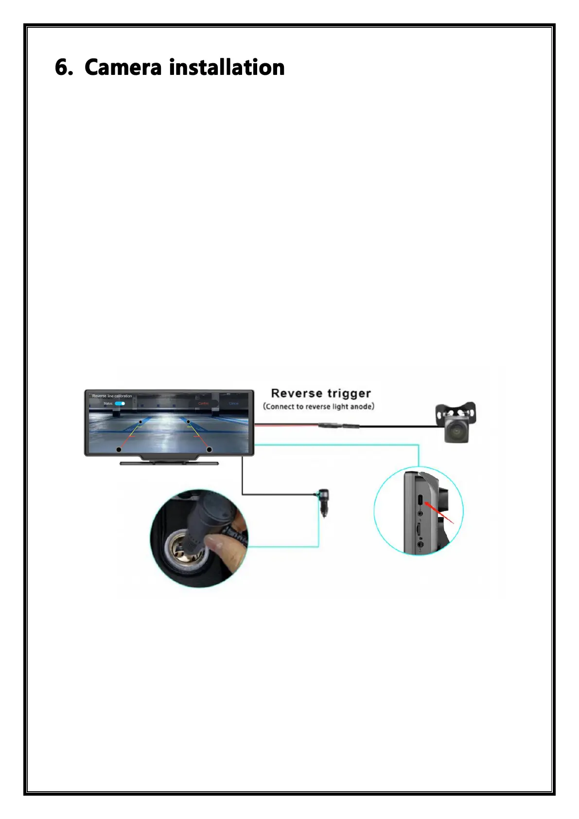 the camera to the rear of the car with screws, the reversing trigger wire (red thin wire)