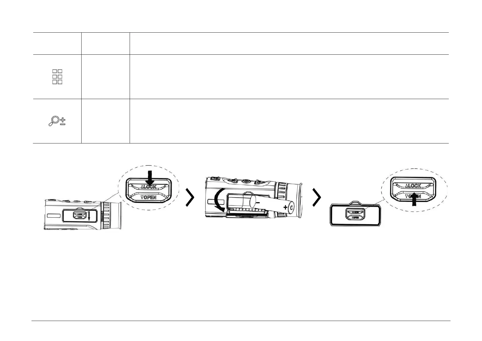 Press: Switch digital zoom | Hold: Correct non-uniformity of display (FFC)