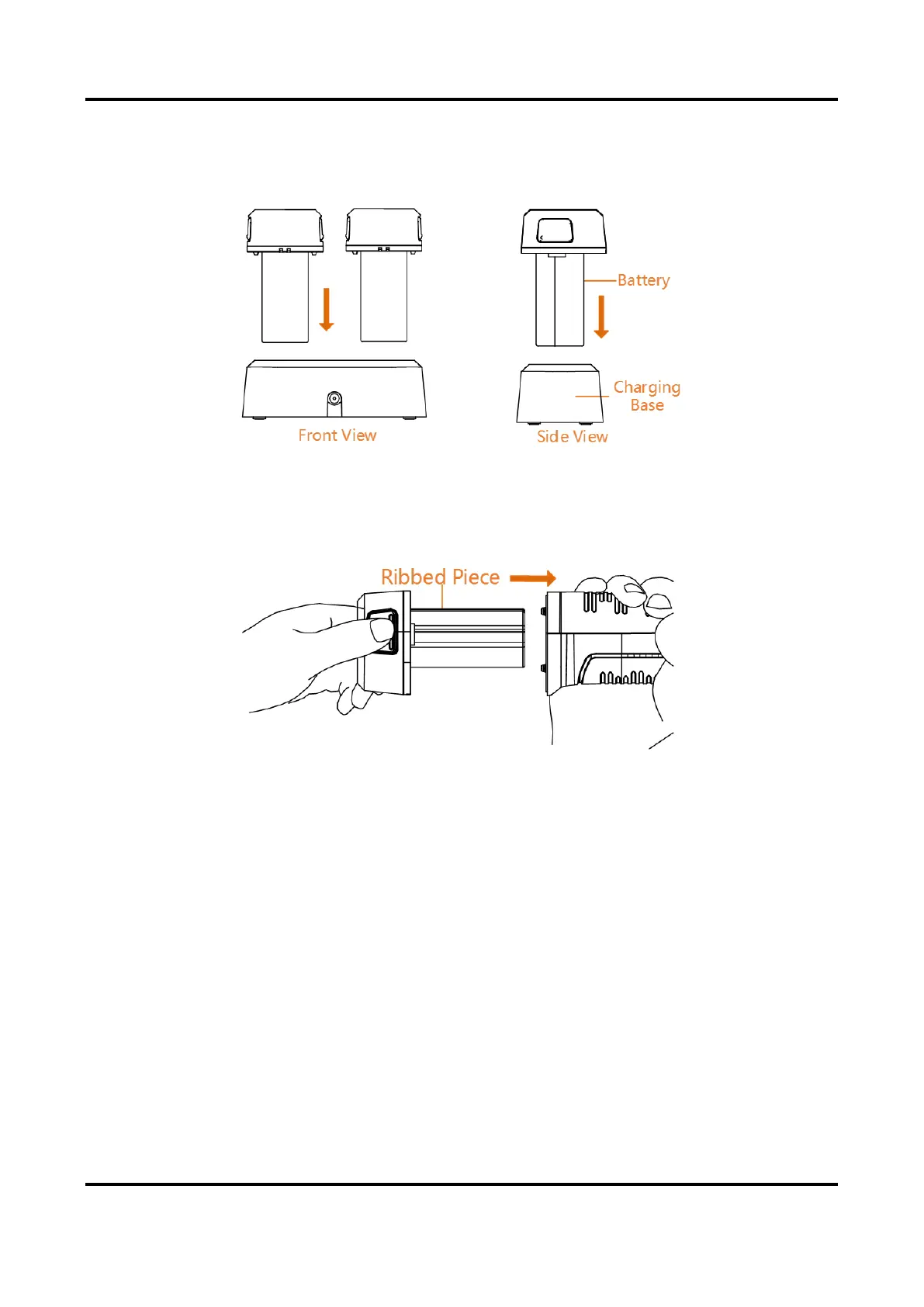 3. Insert the battery into the charging base. You can see the charging status via the pilot lamp on