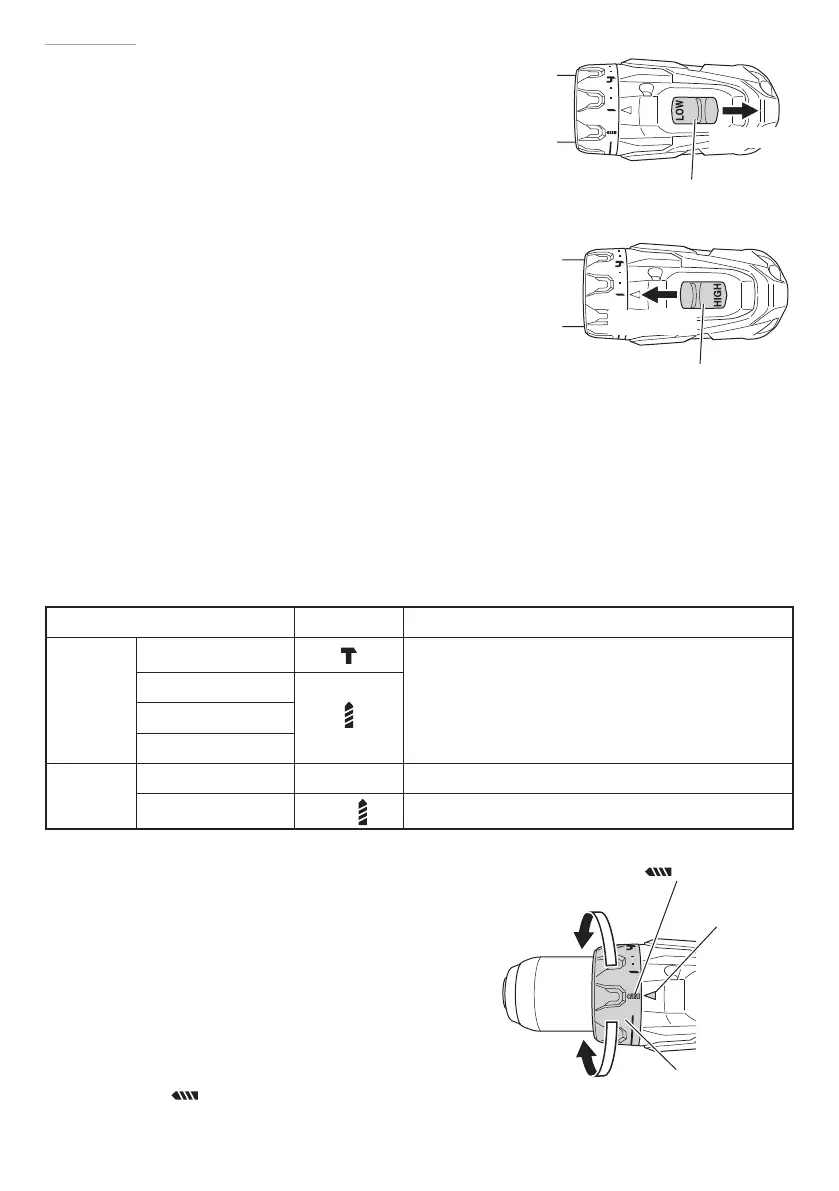 low speed. When set to “HIGH”, the drill rotates at a high