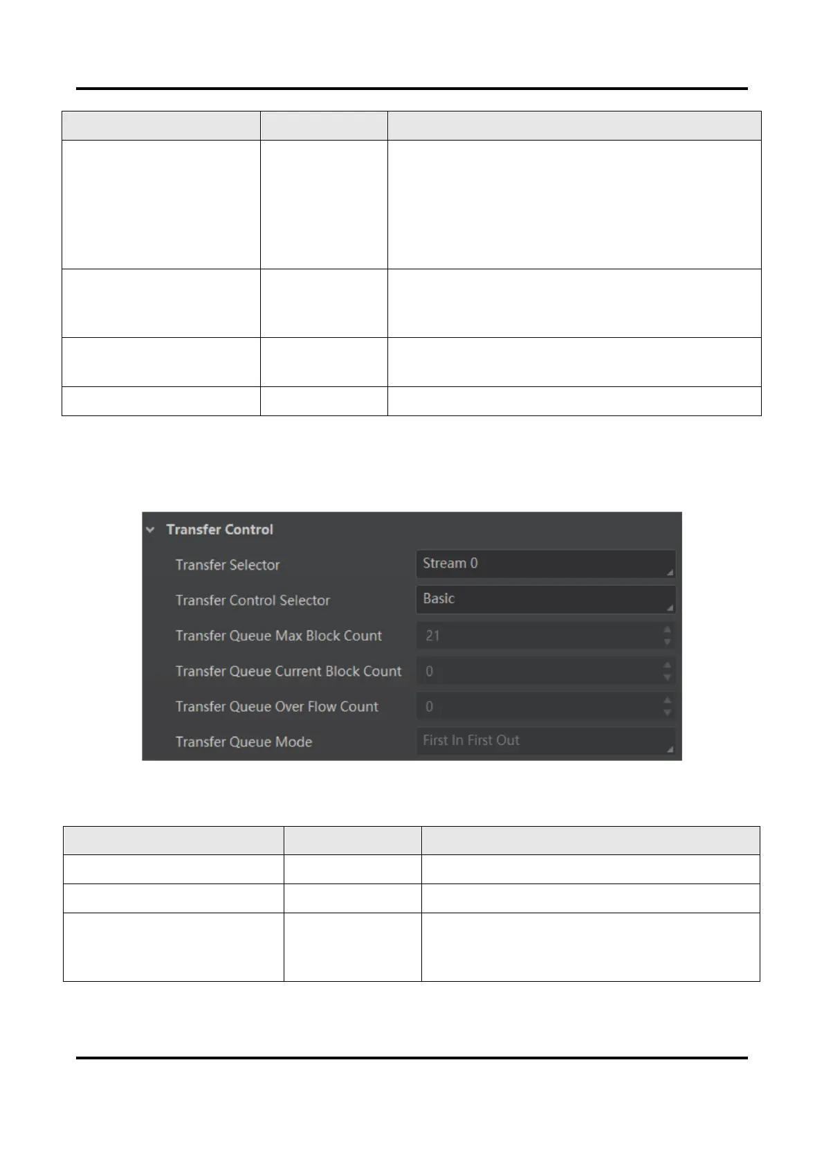 The parameters of basic transfer control are shown below.