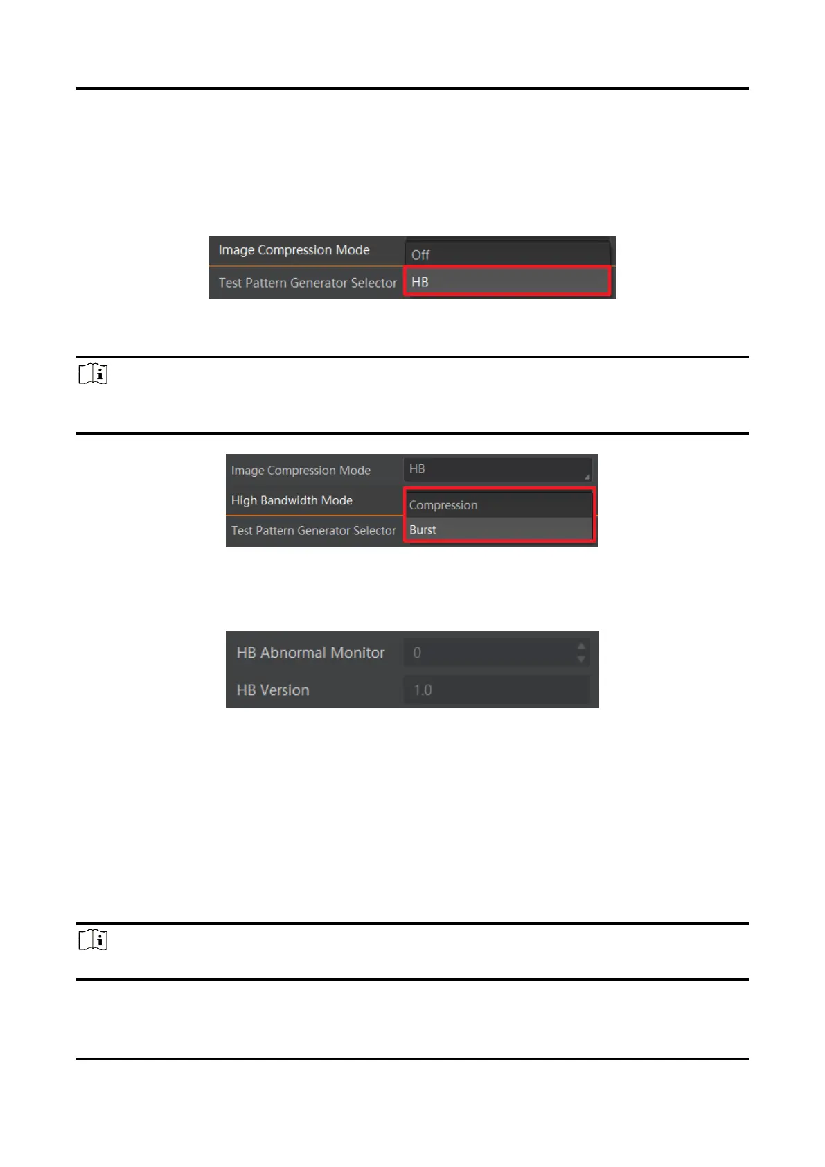 4. (Optional) Vew the image compression mode’s related parameters like HB Abnormal