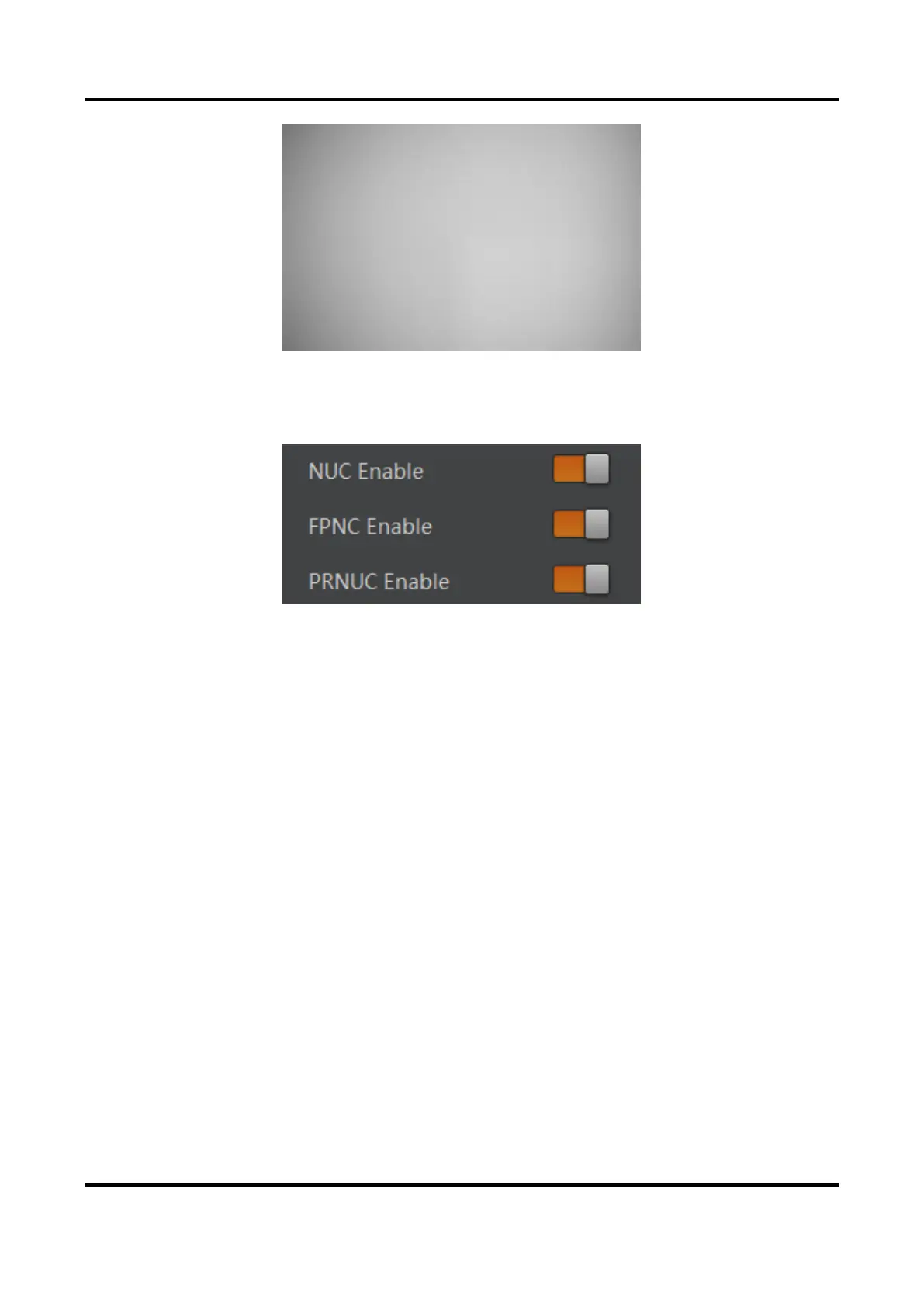 Go to Shading Correction, and enable NUC Enable. The FPNC Enable and PRNUC Enable