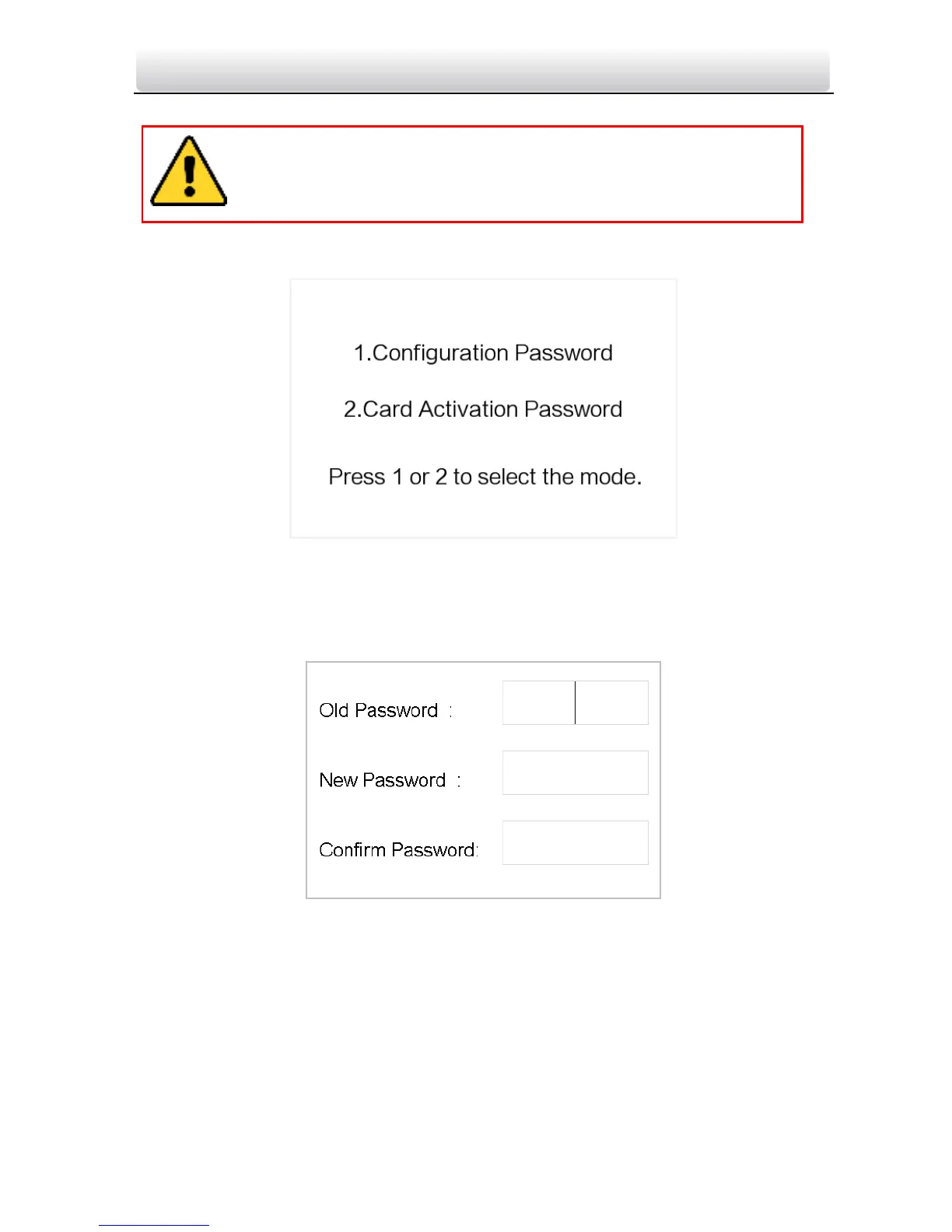 1. On the password settings interface, press the numeric key 1 to enter the configuration