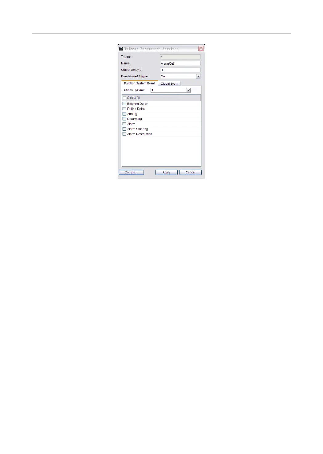 Output Delay (0~5999s): Configure the alarm output time after the alarm being triggered.