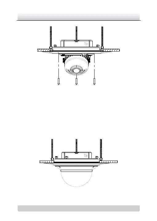 14. Tighten the screws to secure the lower dome with the in-ceiling