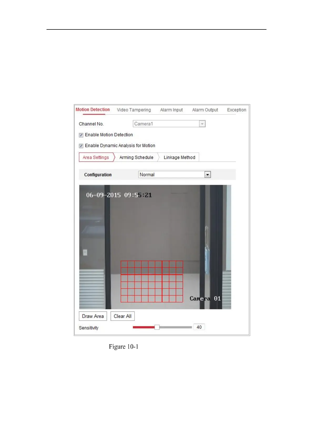 4. Click Draw Area. Click and drag the mouse on the live video to draw a motion