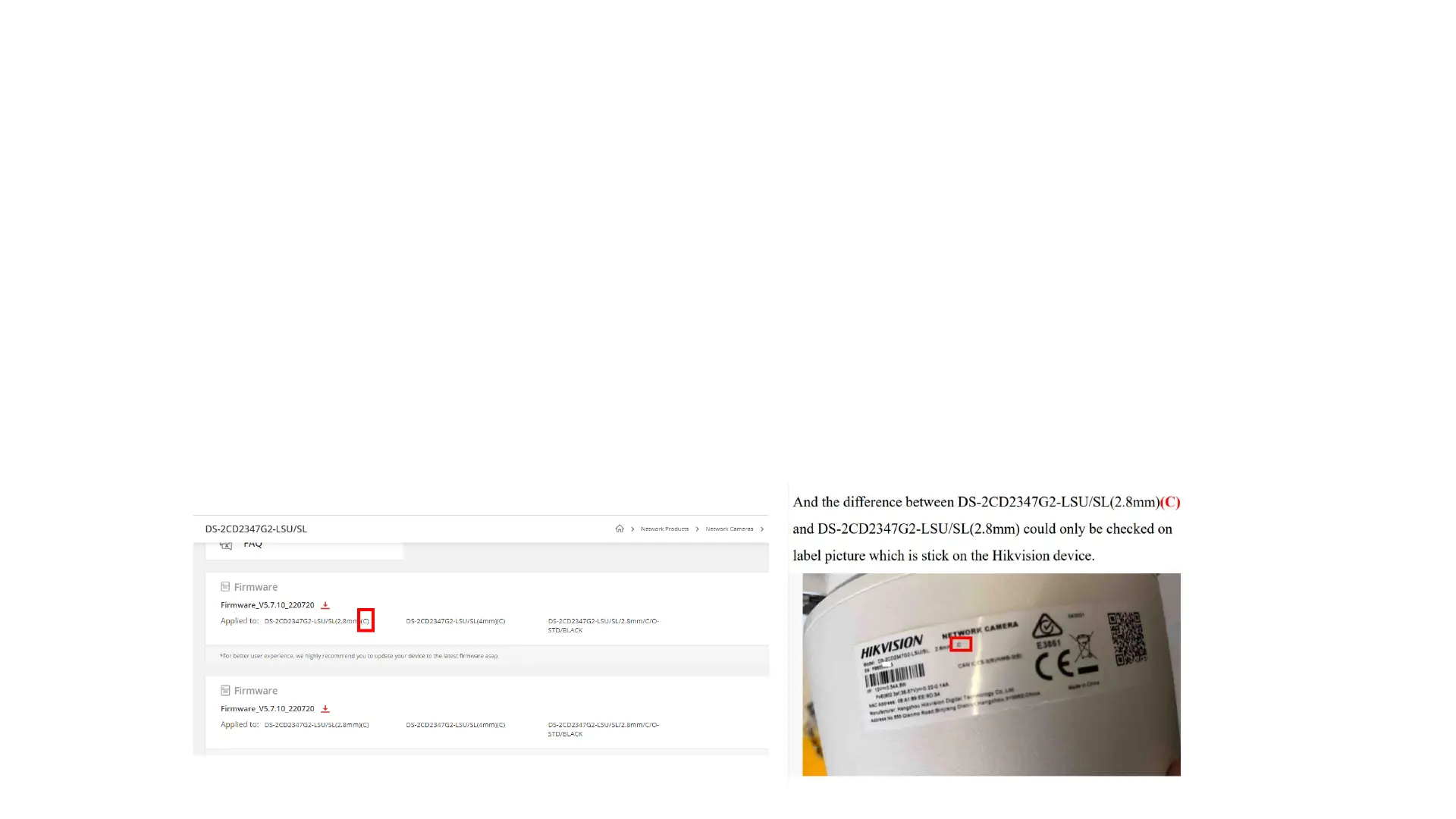 not distinguish the difference between DS-2CD2347G2-LSU/SL (C) and DS-2CD2347G2-