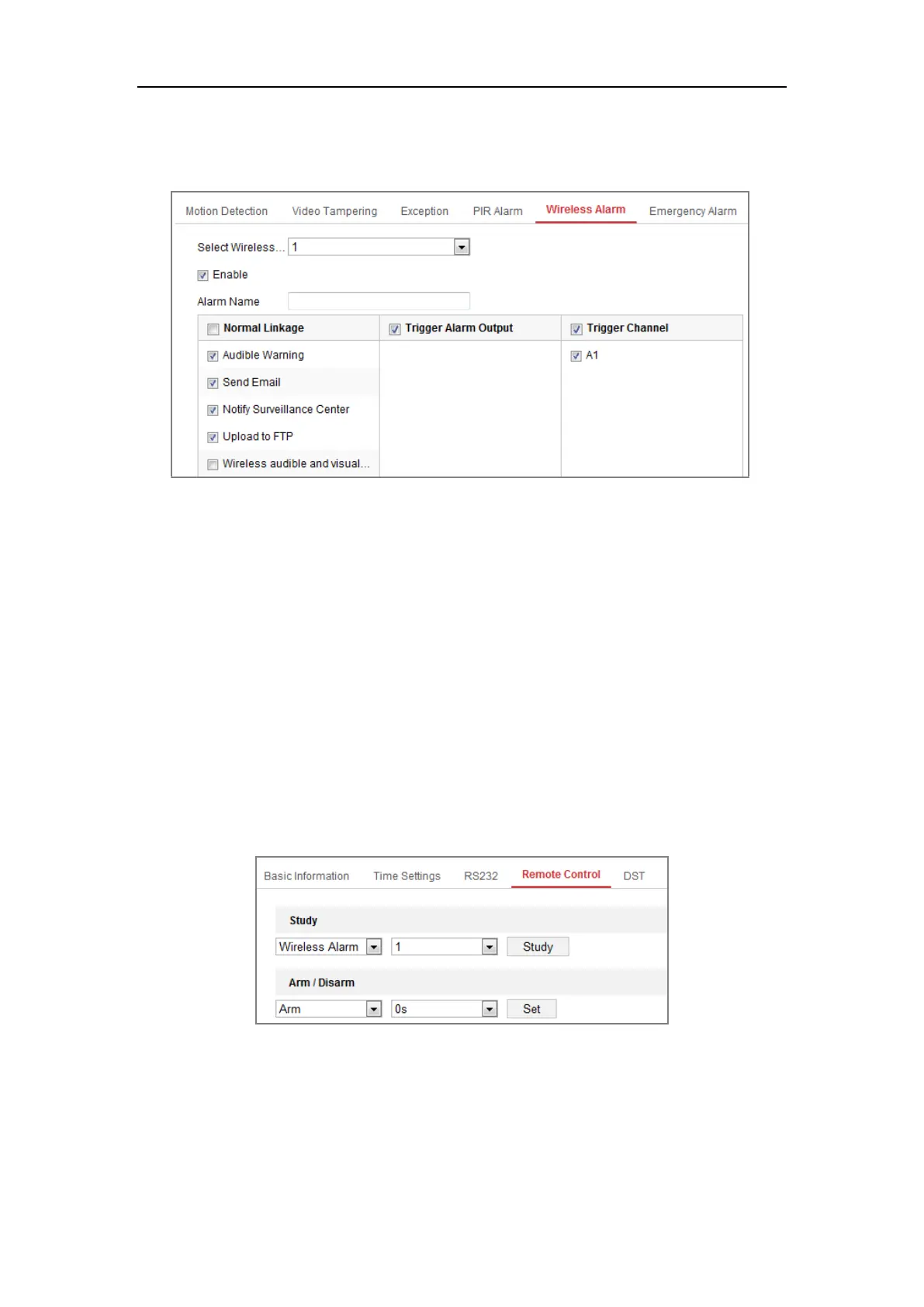 5. Check the checkbox to select the linkage methods taken for the wireless alarm.
