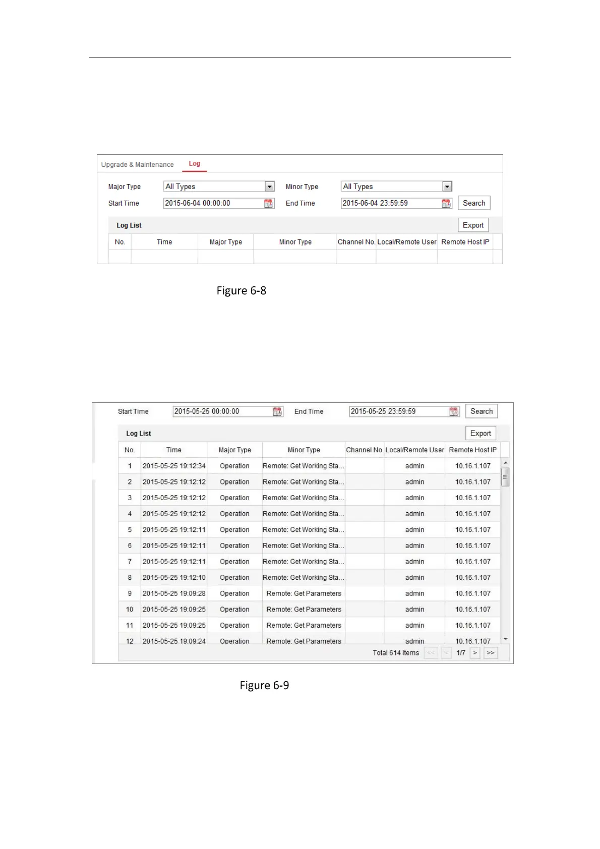 1. Enter log searching interface: Configuration > System > Maintenance > Log.