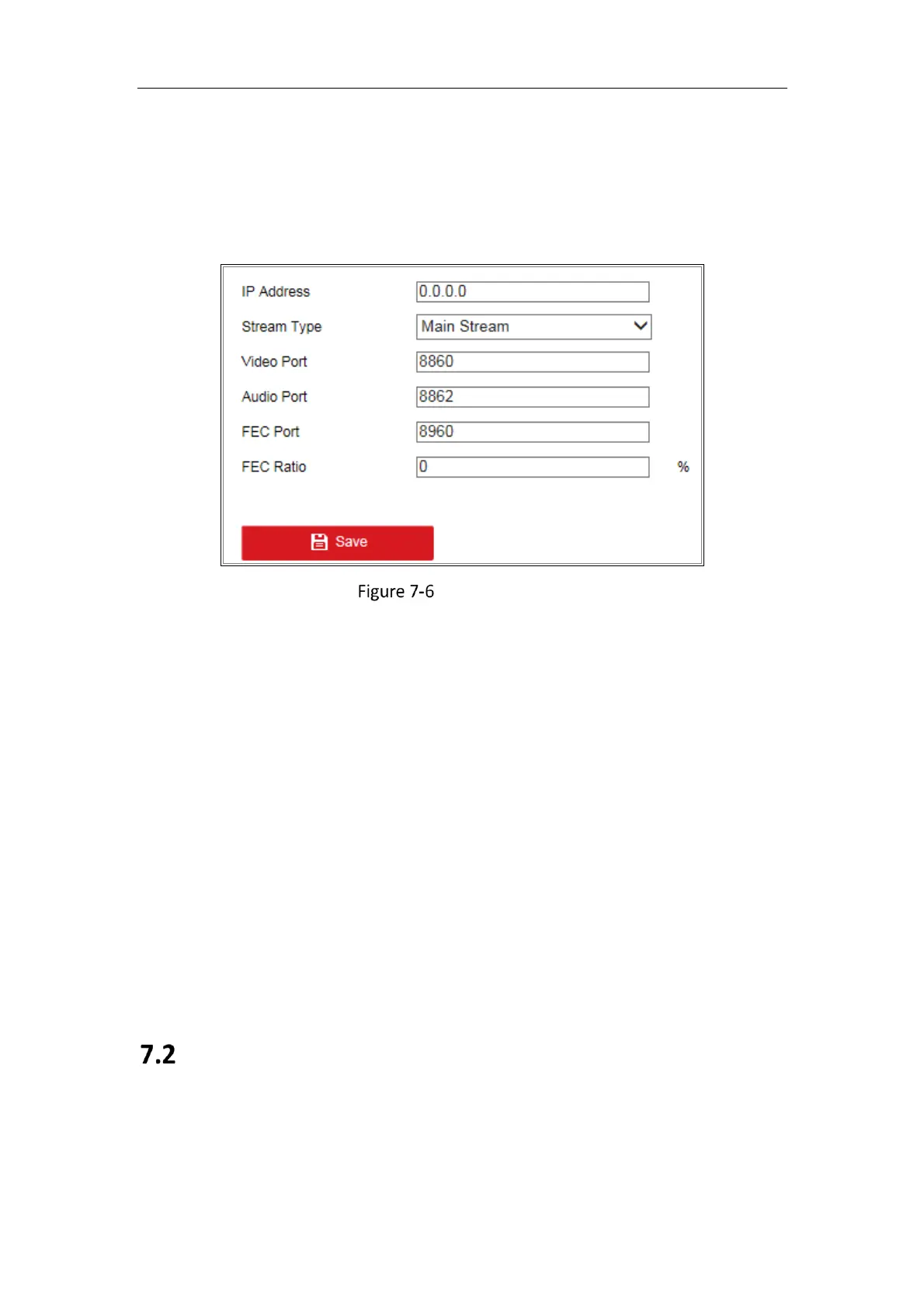 2. Set IP Address, Stream Type, Video Port, Audio Port, FEC Port and FEC Ratio of