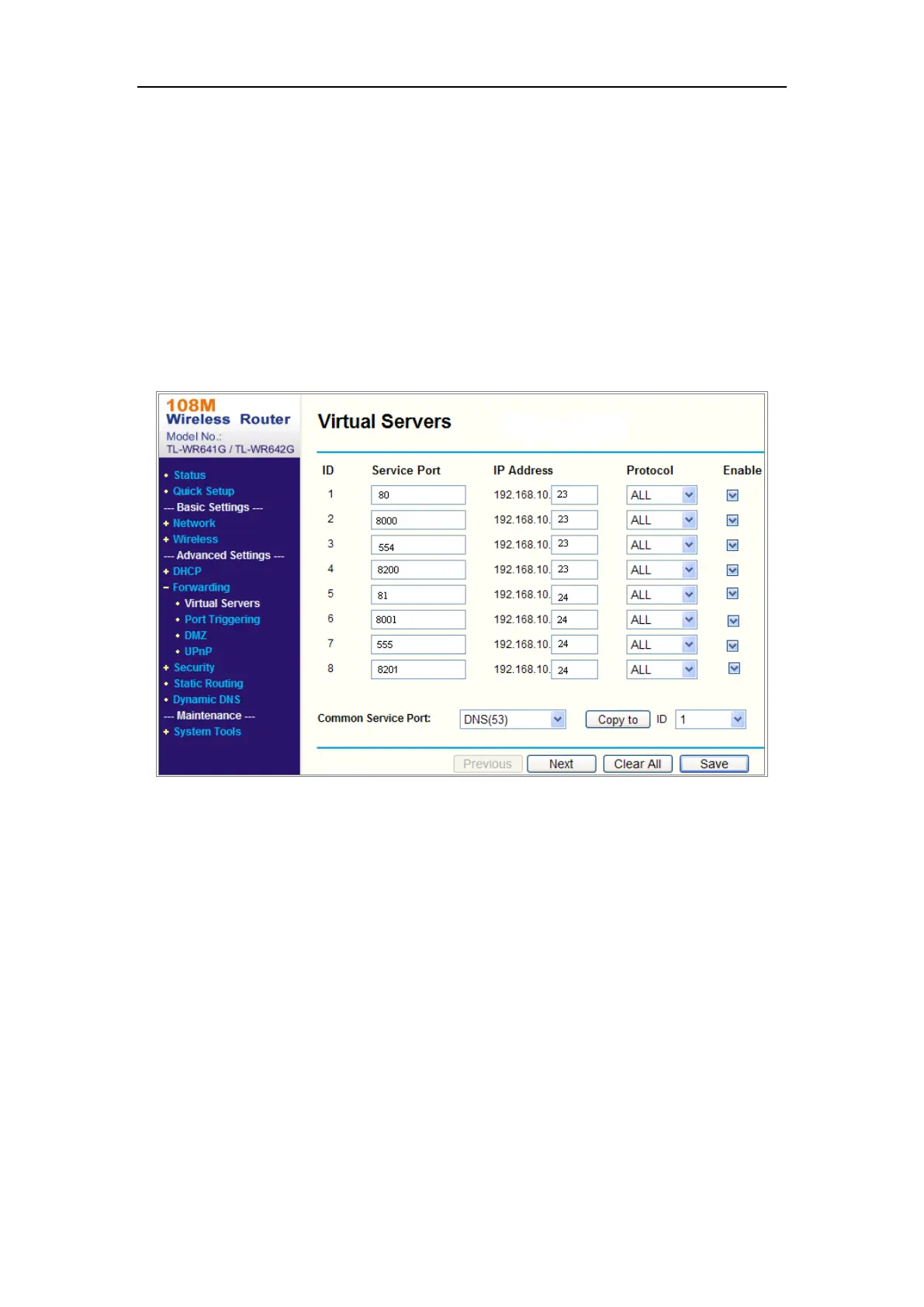 2. Map the port 81, 8001, 555 and 8201 for the network camera at 192.168.1.24.