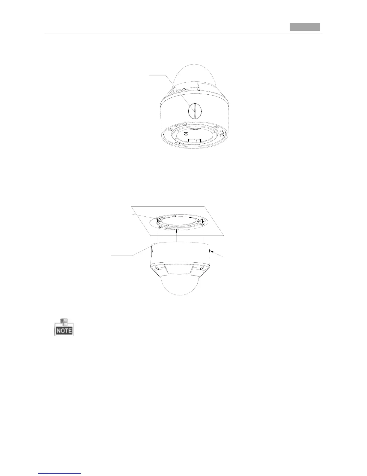 4. Insert the three screws on the mounting base into the corresponding holes on the ceiling mount.