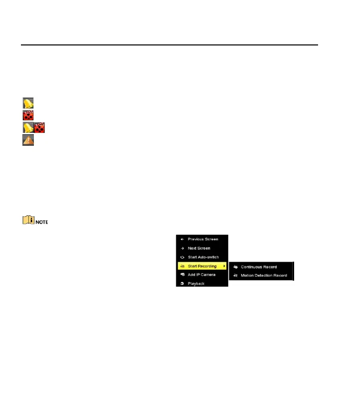 In the live view mode, there are icons at the upper-right corner of the screen for each channel, showing the