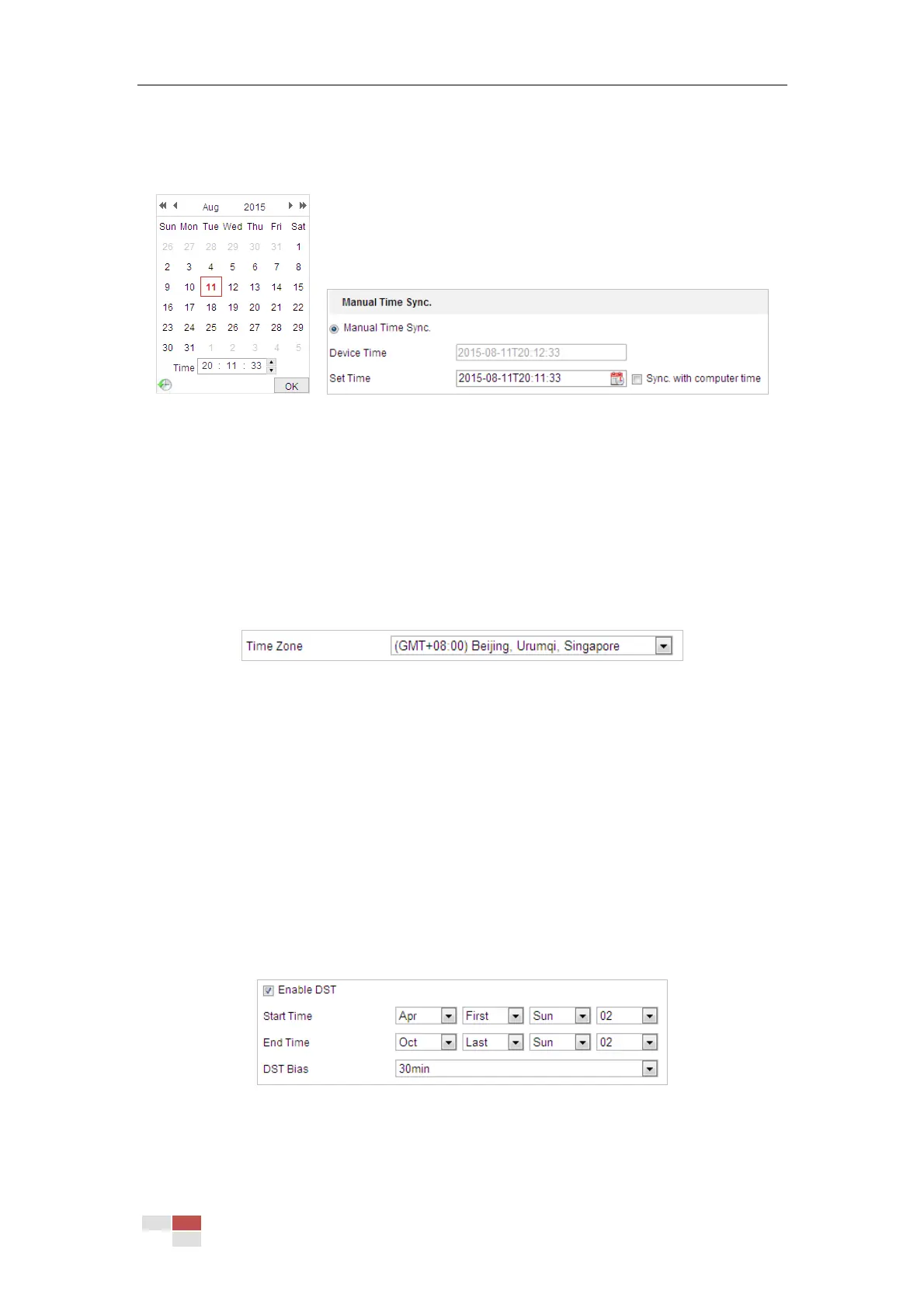 1. Enter the DST interface by Configuration > System > System Settings > DST