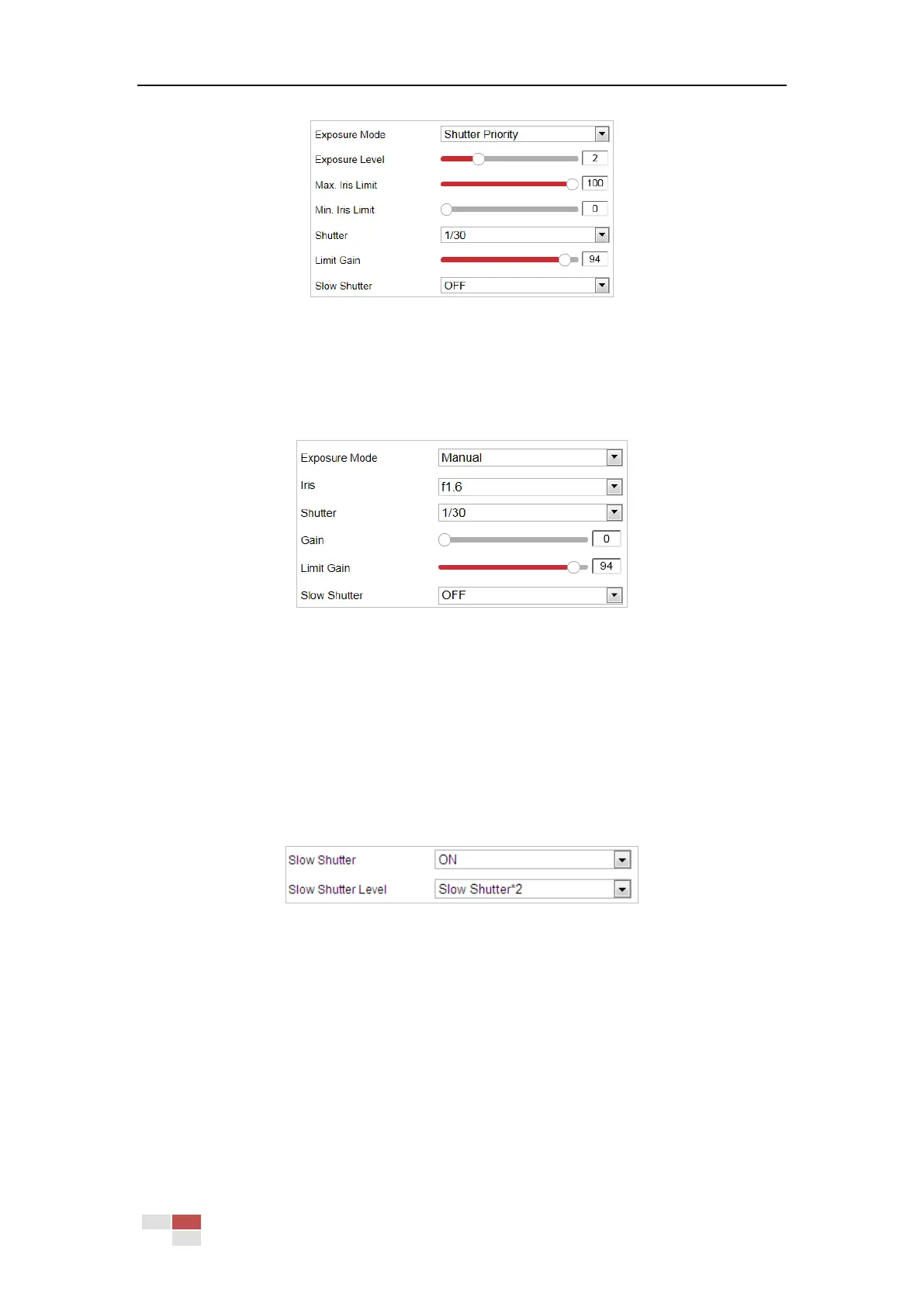 In Manual mode, you can adjust the values of Gain, Shutter, Iris manually.