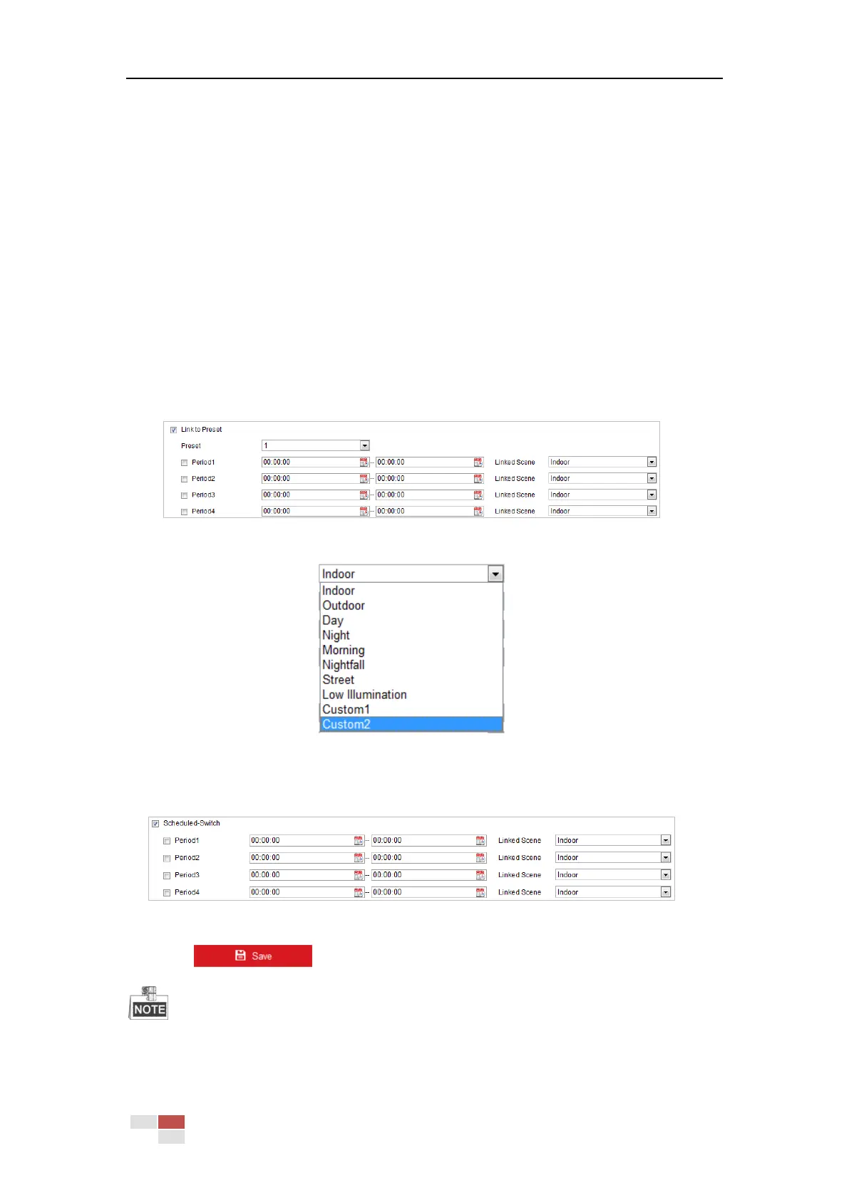 You can configure Link to Preset or Scheduled-Switch in this interface. Link to Preset: Set the