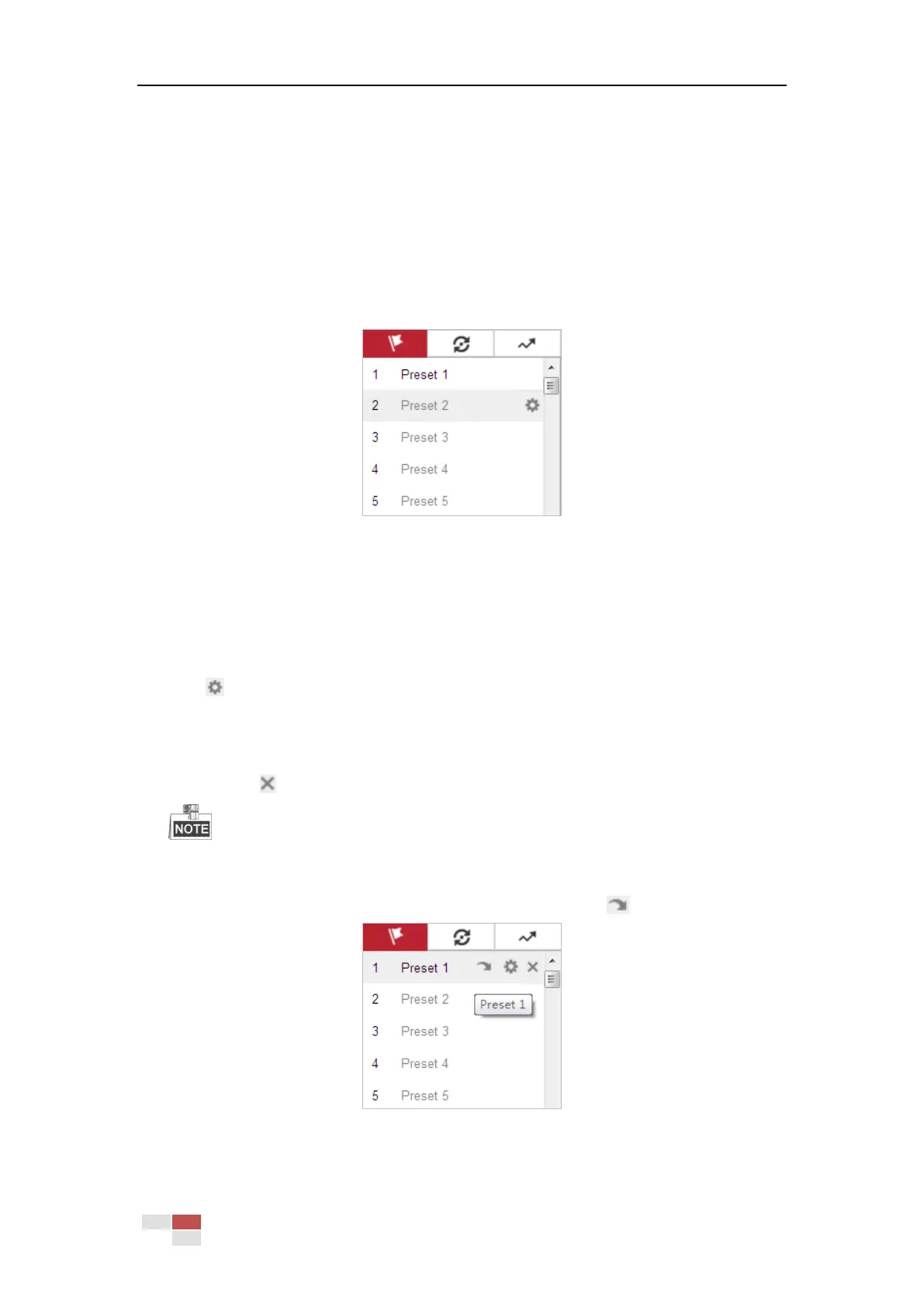 A preset is a predefined image position. For the defined preset, you can click the calling button to