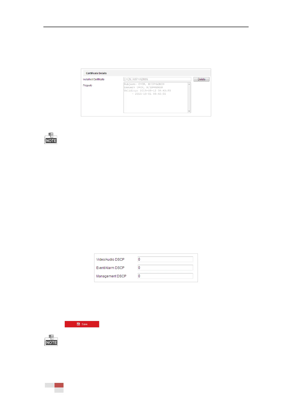 2. Configure the QoS settings, including video / audio DSCP, event / alarm DSCP and