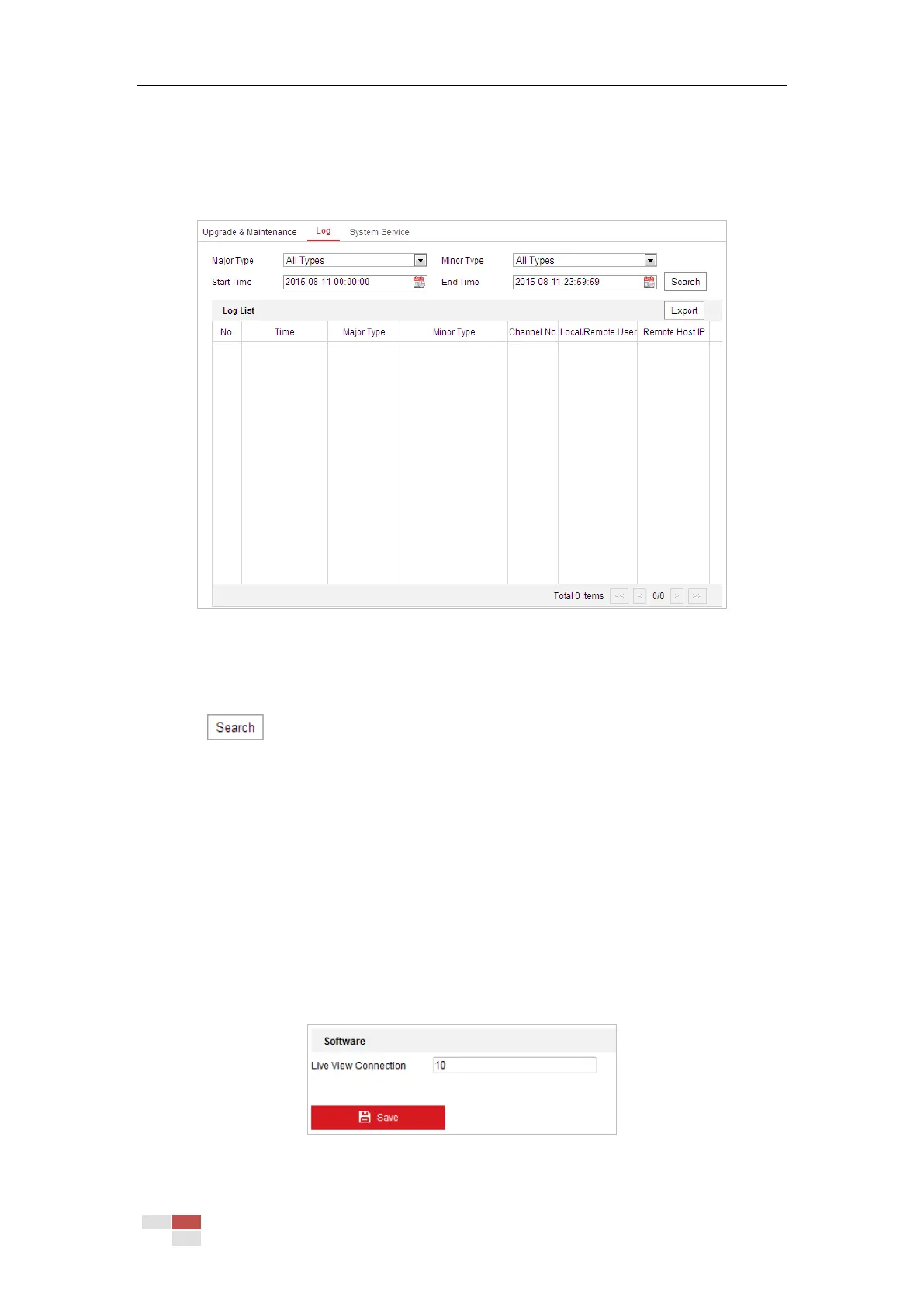 2. Set the log search conditions to specify the search, including the Major Type, Minor Type,