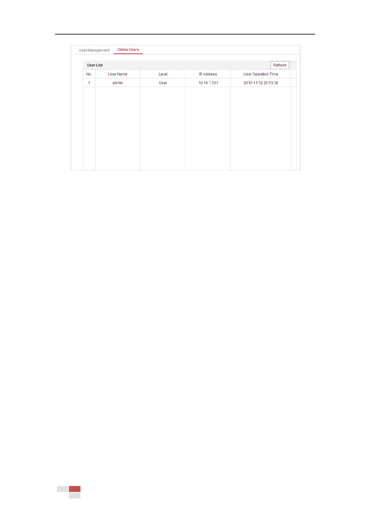 User information, such as user name, level, IP address, and operation time, is displayed in the