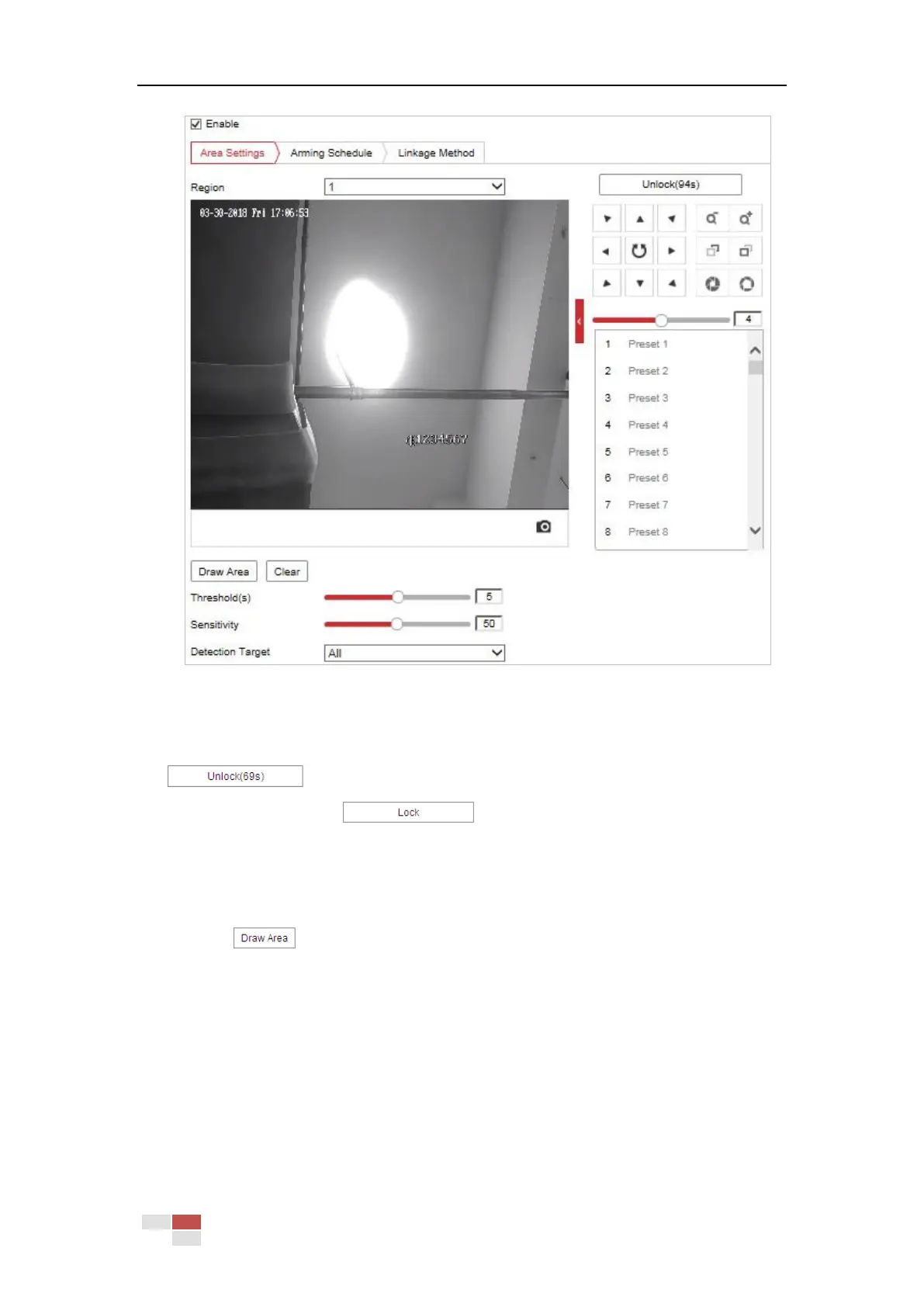 3. The event triggered and park action related PTZ movement will be locked for 180 seconds