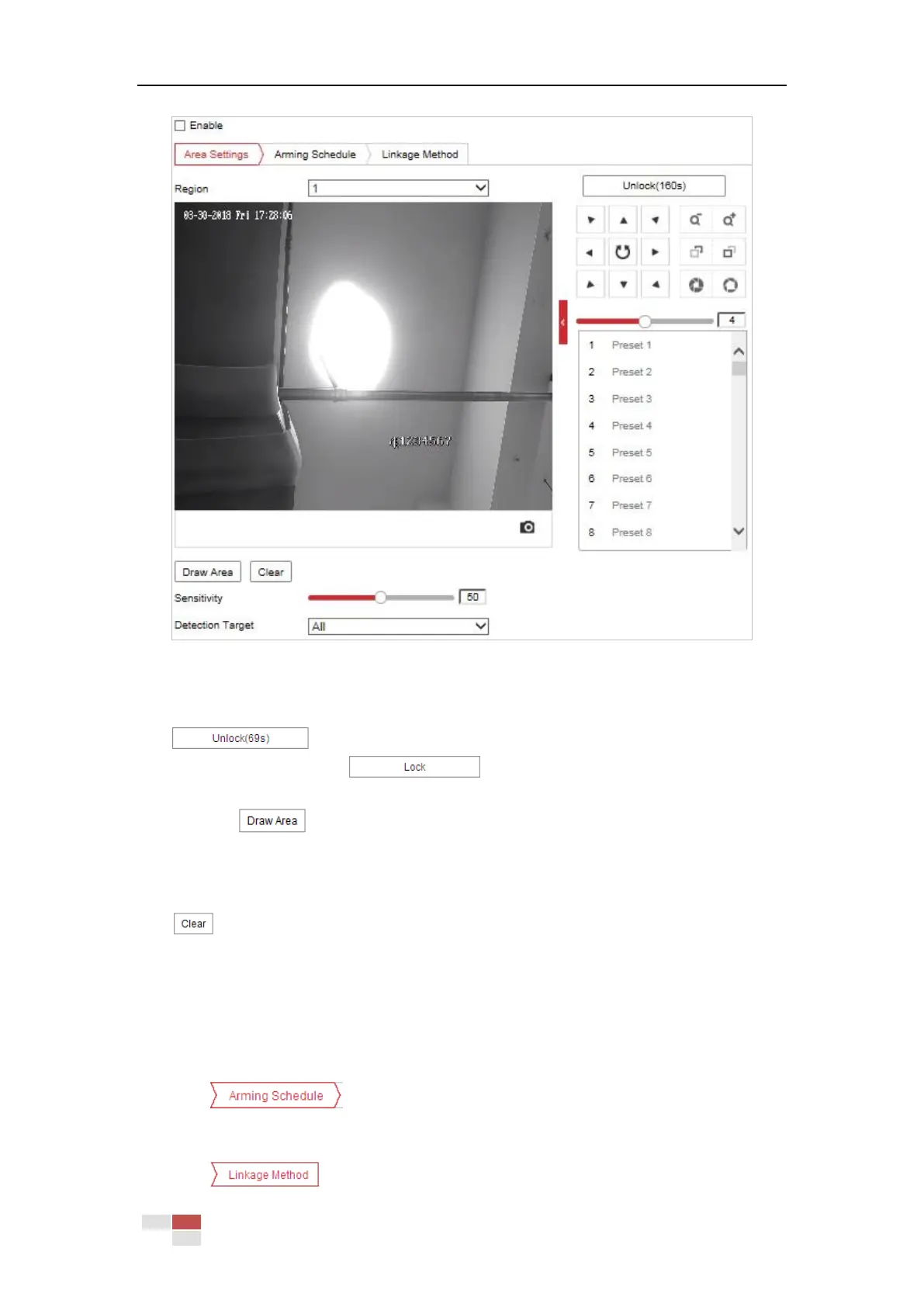 3. The event triggered and park action related PTZ movement will be locked for 180 seconds